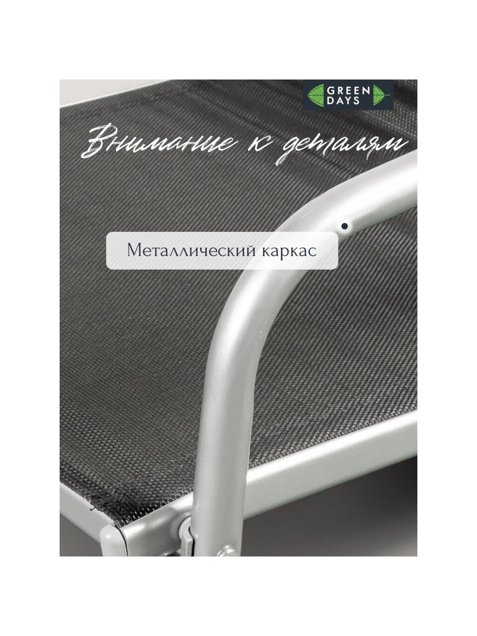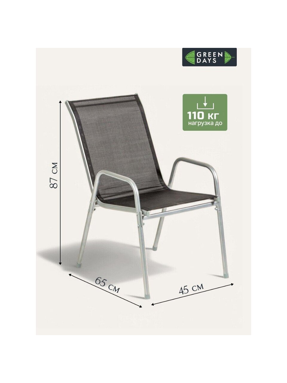 Садовая мебель Green Days "Элла" выполнена в элегантном черном цвете, что придает ей универсальность и делает подходящей для различных интерьерных решений. Столешница из стекла в сочетании с металлическим каркасом и текстиленовыми стульями обеспечивает прочность и долговечность. Благодаря водонепроницаемым свойствам и полимерному покрытию, мебель устойчива к различным погодным условиям, что позволяет использовать ее круглый год.