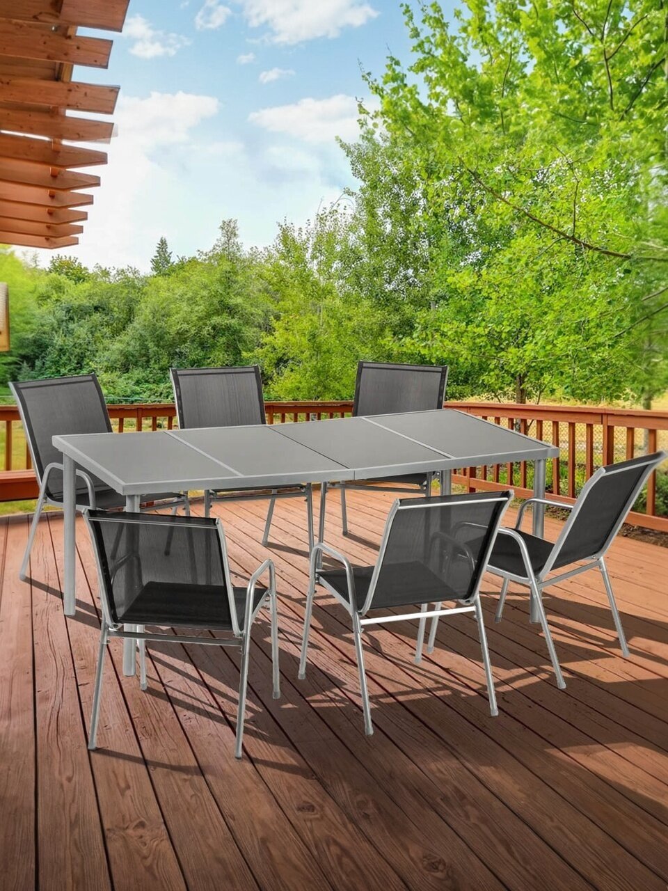 Представляем мебельный набор для сада и дачи Green Days "Элла" — идеальное решение для создания стильного и комфортного уголка отдыха на свежем воздухе. Этот комплект включает в себя просторный стол и шесть удобных стульев, что делает его отличным выбором для обедов на открытом воздухе с семьей и друзьями. Продукт отличается высоким качеством и современным дизайном, который подчеркнет эстетику любого пространства, будь то сад, терраса или даже гостиная.