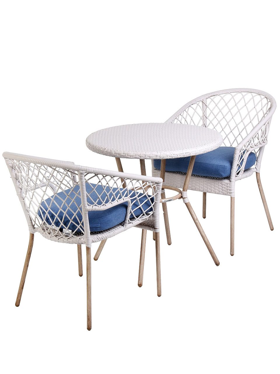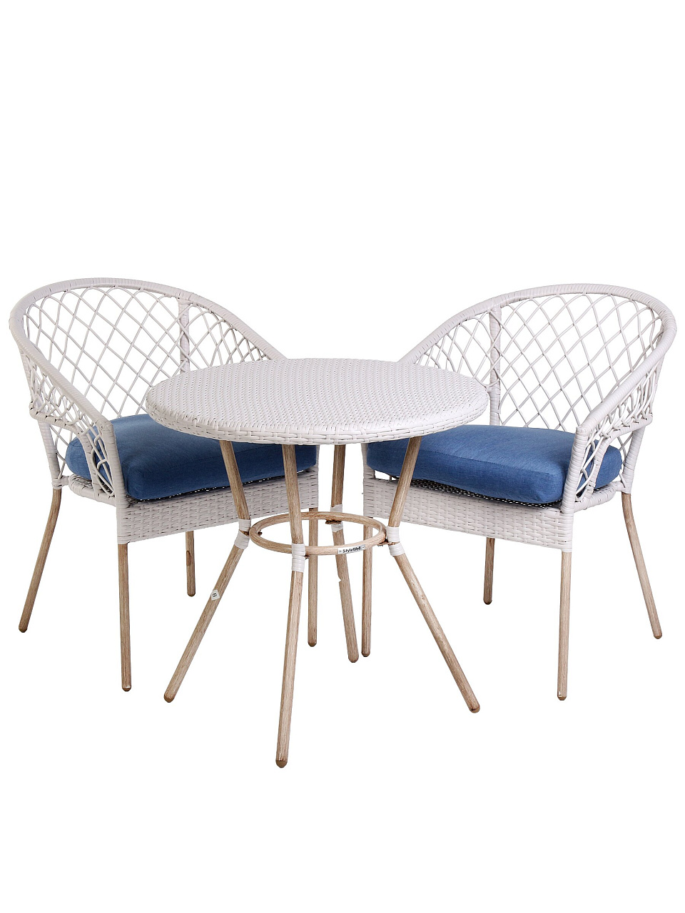 Набор рассчитан на двух человек: два стула с подлокотниками и один стол. Идеально для отдыха, обедов или чаепитий на свежем воздухе.