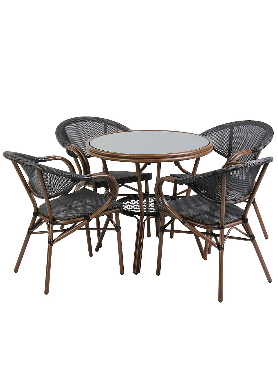 Чем отличается данный комплект от аналогов? Здесь оптимальное соотношение цены и качества: нет лишних деталей, которые быстро выходят из строя, а стекло не мутнеет от солнца. Подходит ли эта мебель для улицы — да, конструкция рассчитана на круглогодичное использование и не требует сложного ухода. Как использовать набор: обедать на свежем воздухе, устраивать встречи с друзьями, организовать уютное место для кофе — варианты ограничены только вашей фантазией.