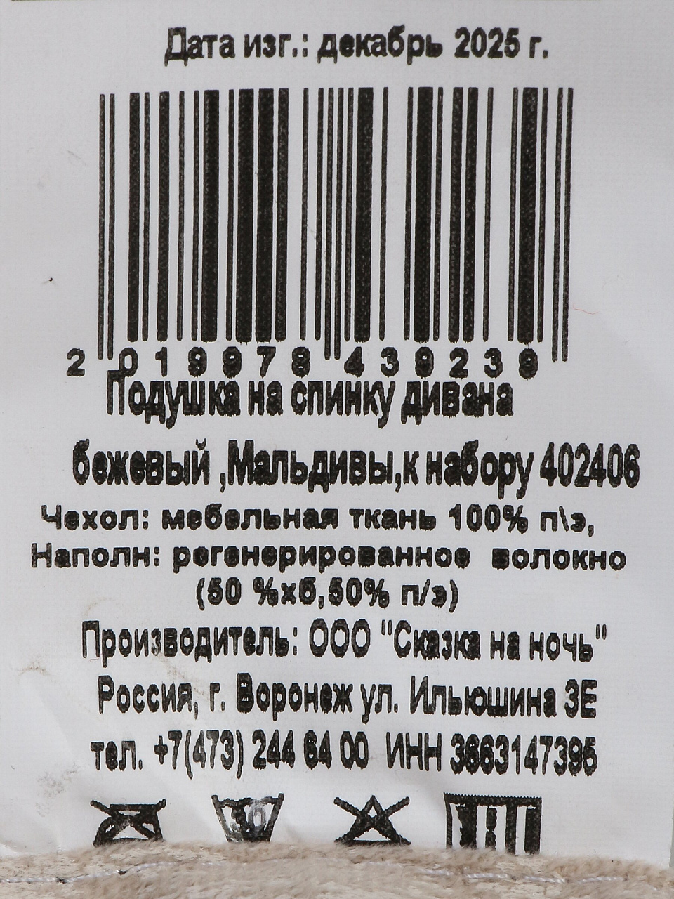 Обратите внимание на материал (полиэстер), цвет (бежевый), совместимость с набором 402406 и отсутствие водонепроницаемости. Подушка предназначена специально для спинки дивана, легко крепится и поддерживает спину.