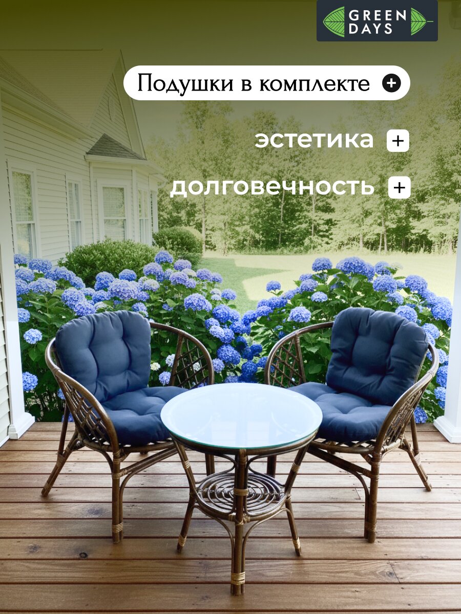 Вы можете приобрести «Мебель садовая Green Days, Мальдивы Люкс мини, кофейная, стол, 55х55х56 см, 2 стула, подушка серо-голубая, 110 кг, IND13O20-ЛЮКС» и другие товары в нашем интернет-магазине в Таганроге по низким ценам и с бесплатным самовывозом.