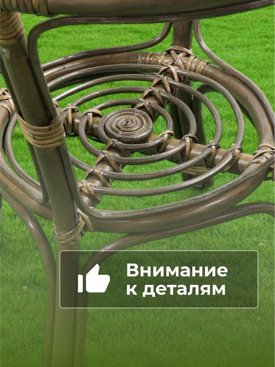Мебель устойчива к влаге и ультрафиолету, подходит для использования в саду, на даче, террасе и балконе в течение всего сезона. Для зимнего хранения рекомендуется укрытие.