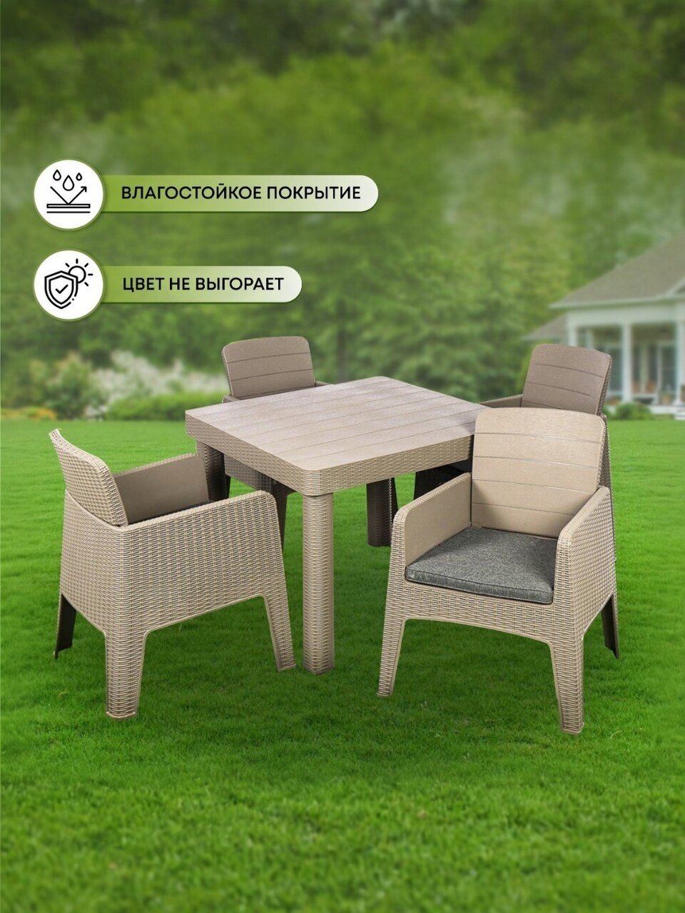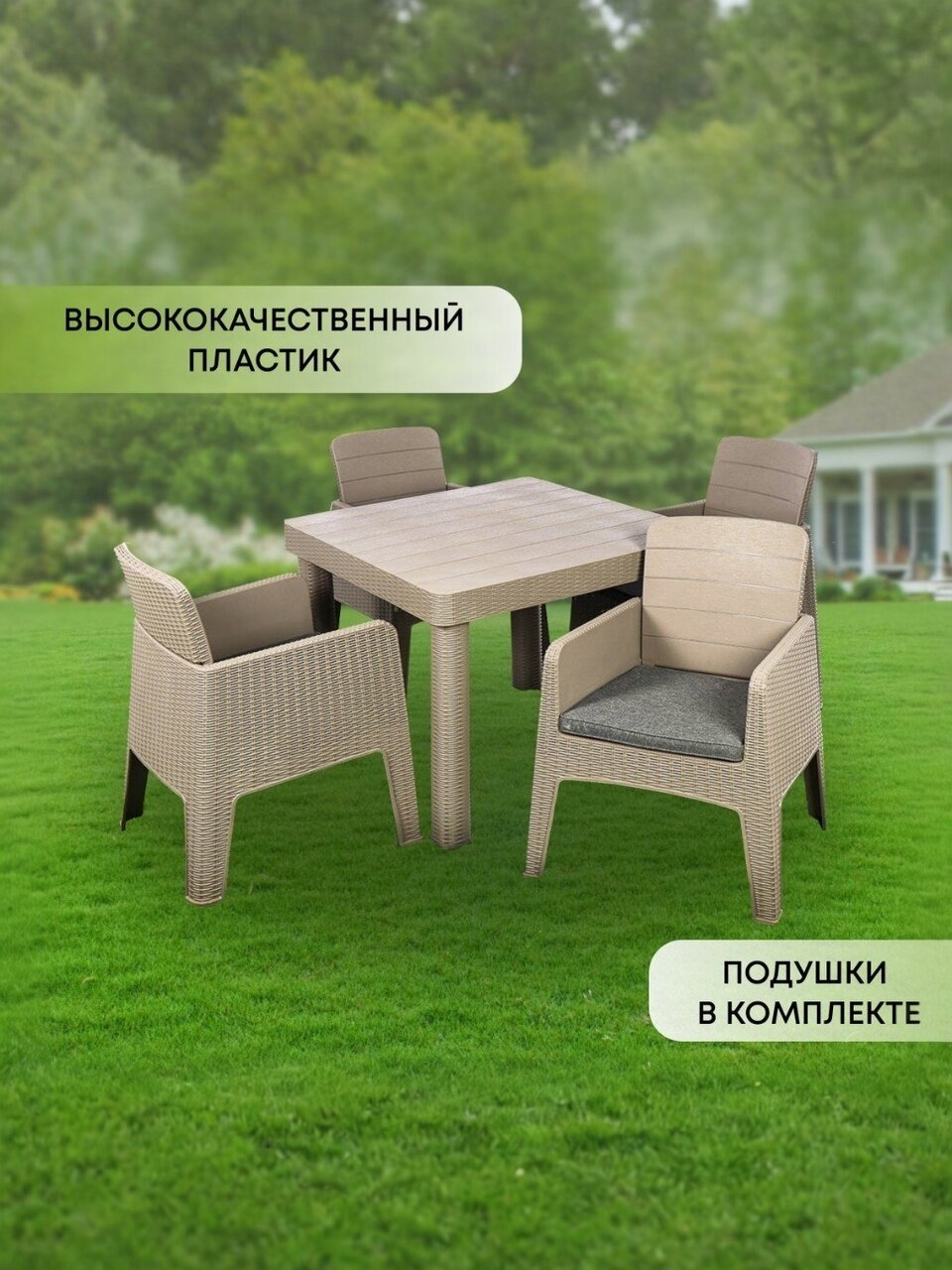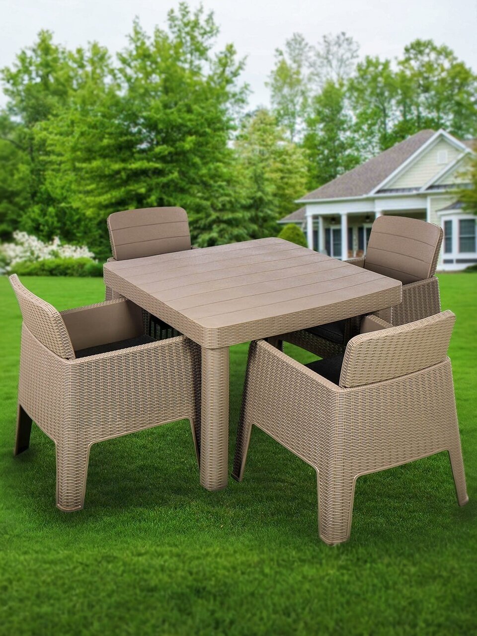 Вы можете приобрести «Мебель садовая Green Days, кофе с молоком, стол, 90х90х76 см, 4 кресла, подушка, 150 кг, 250+008-lght coff» и другие товары в нашем интернет-магазине в Курске по низким ценам и с бесплатным самовывозом.