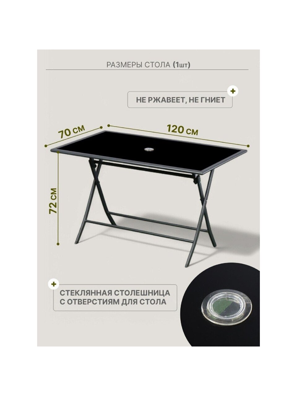 - Размер стола (ДхШхВ): 120х70х72 см;