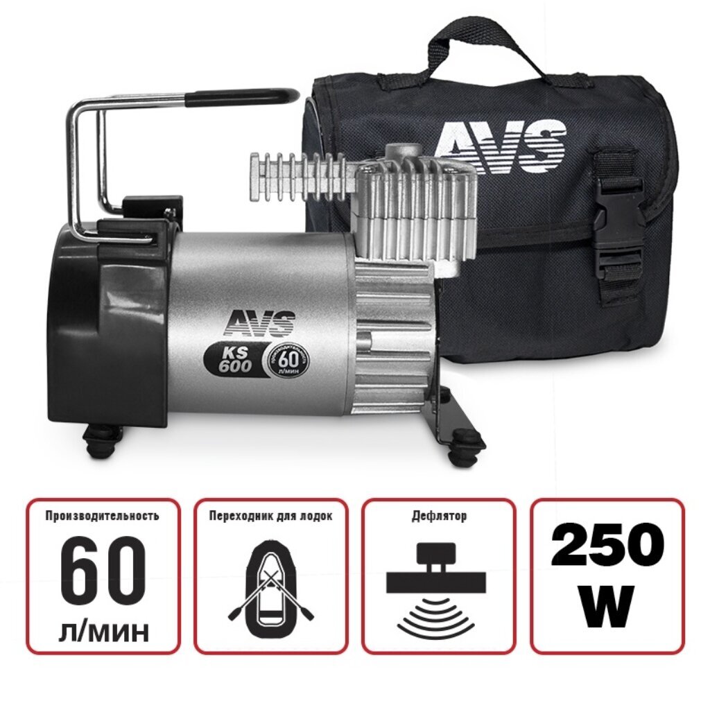 Компрессоры сегодня - это практичная необходимость. Универсальные модели AVS уже заработали признательность у многих автолюбителей. Помимо прямого назначения компрессоры AVS применяются для накачки шин, камер велосипедов, мотошин, матрасов, мячей, шаров и т. п. AVS Turbo KS 600 отлично совмещает в себе отличные показатели и средние размеры.