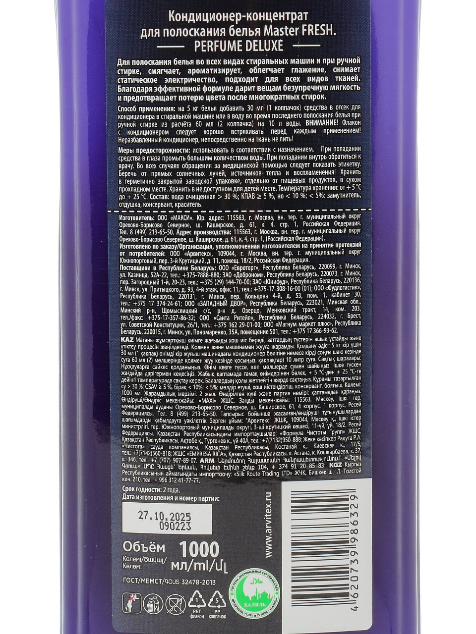 Вы можете приобрести «Кондиционер для белья Master Fresh, 1 л, Незабываемое впечатление, концентрат» и другие товары в нашем интернет-магазине в Железногорске по низким ценам и с бесплатным самовывозом.