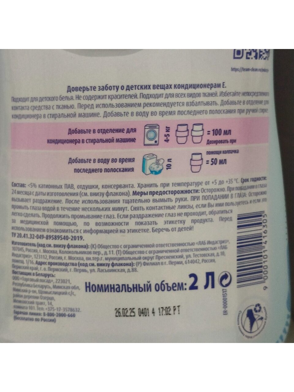Вы можете приобрести «Кондиционер для белья Е, 2 л, для детских вещей, Детский» и другие товары в нашем интернет-магазине в Ельце по низким ценам и с бесплатным самовывозом.