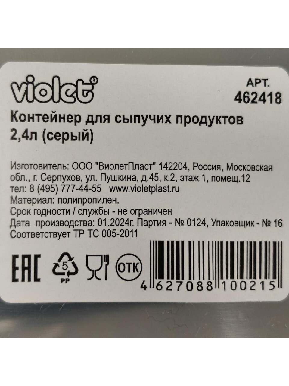 Оформите заказ на контейнер для сыпучих продуктов Violet 2.4 л — получите практичное решение для кухни с доставкой по выгодной цене. Гарантия качества и быстрая отправка!