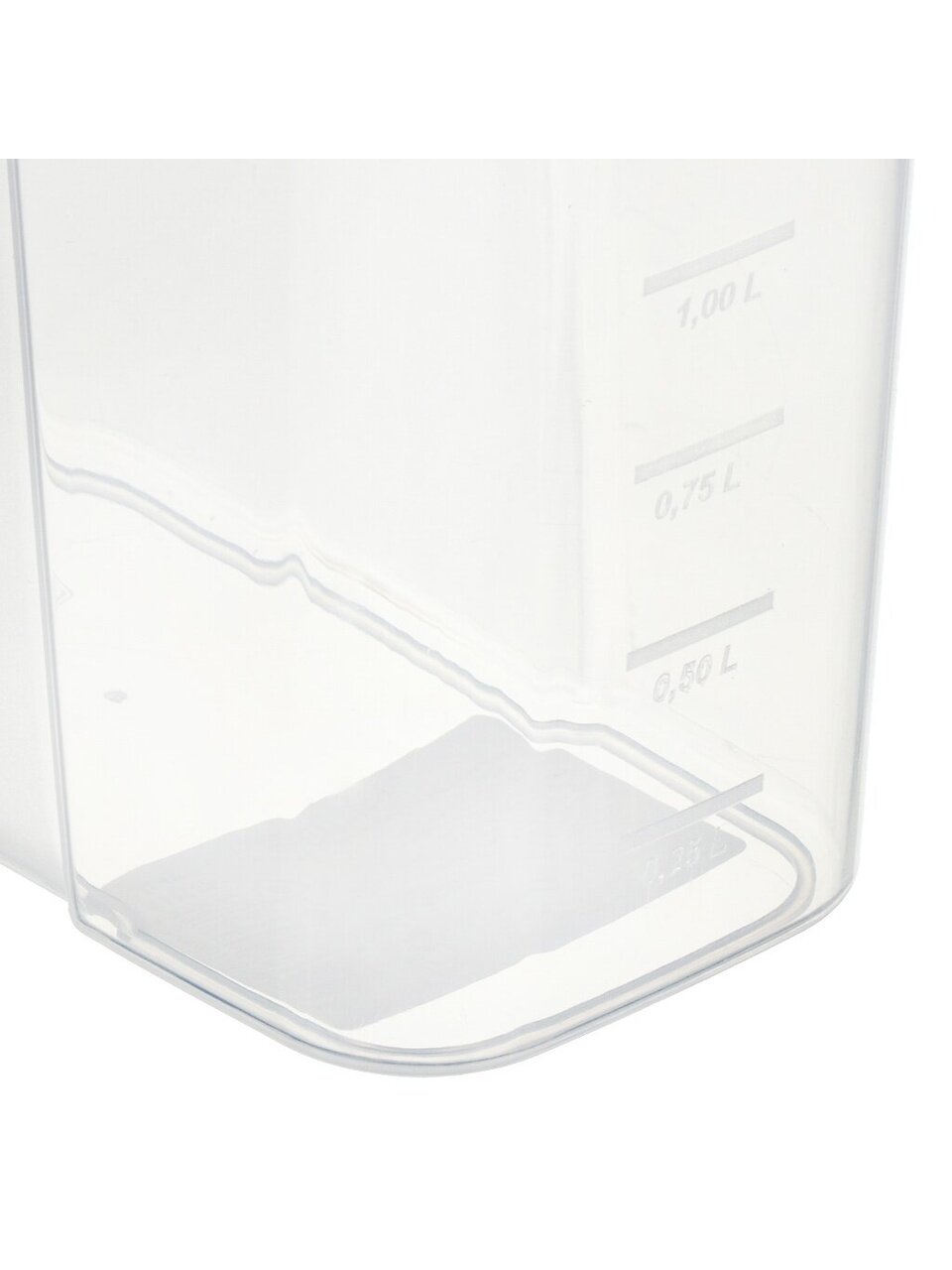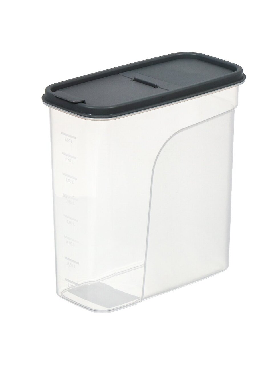 Объём — 2.4 литра, размеры: длина 20 см, ширина 10 см, высота 20 см. Компактная прямоугольная форма экономит место на полке.