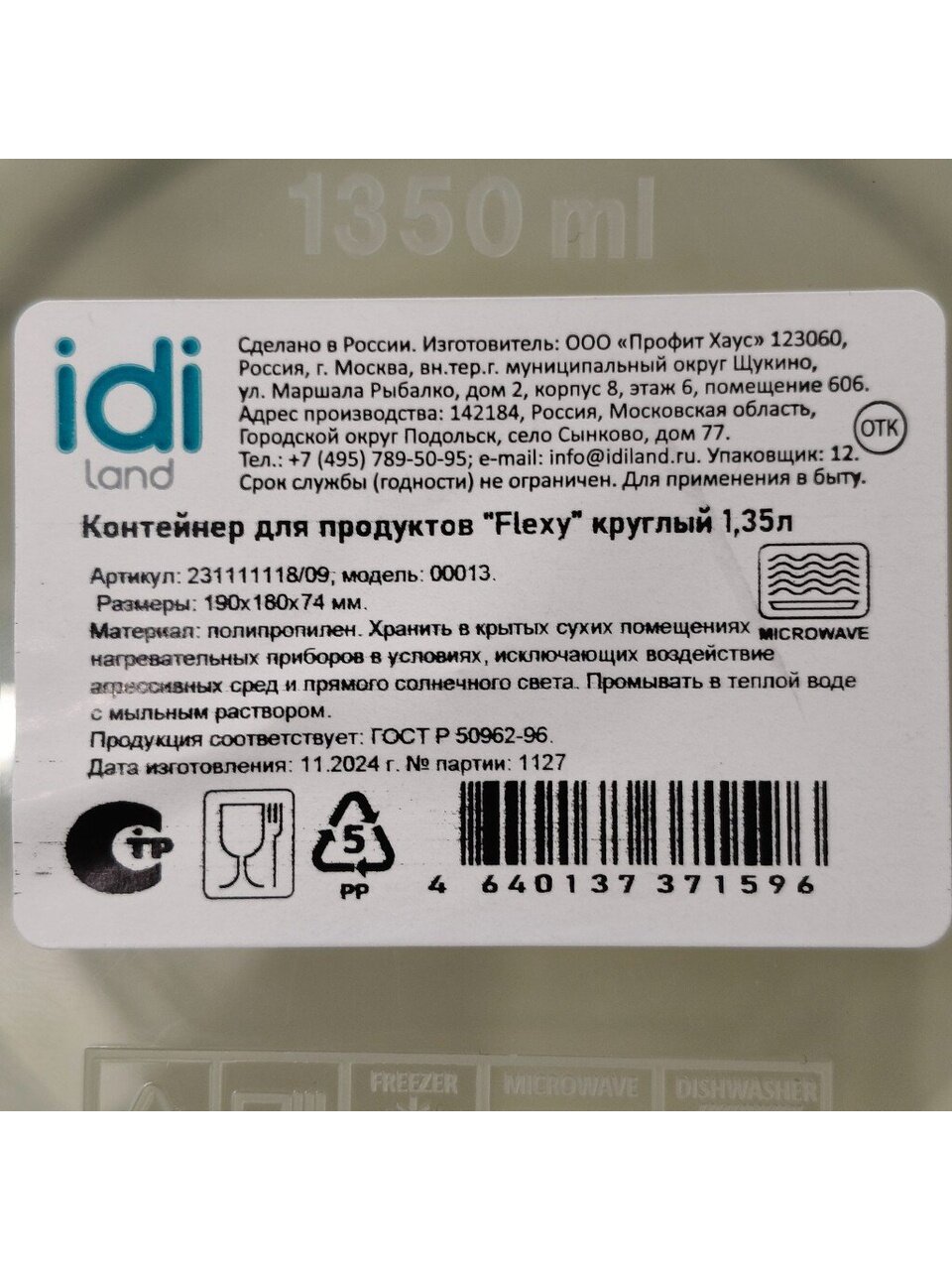 Контейнер пищевой пластик 1.35 л IDIland Flexy: компактное хранение без запаха, герметичность, подходит для дома и дачи — выгодно купить онлайн.