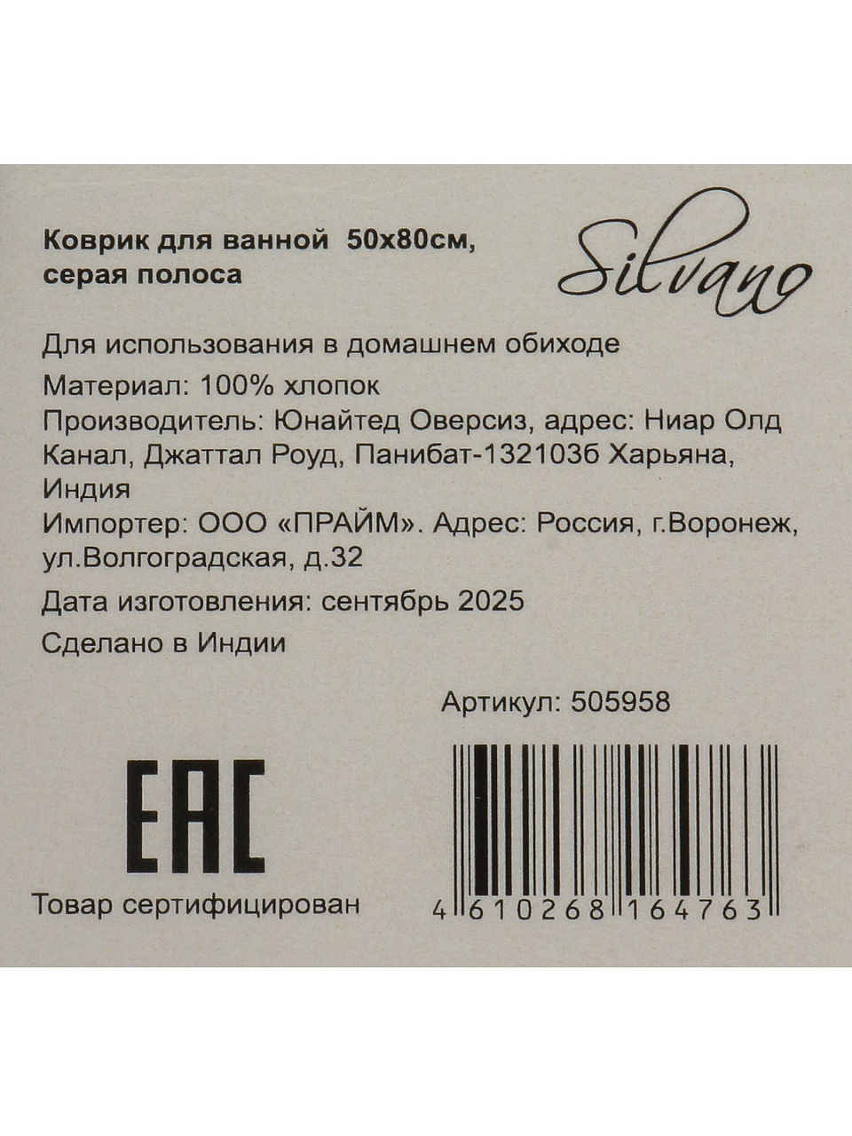 Коврик для ванной Silvano Лиона 50х80 см: мягкий хлопок, стильная серая полоса, комфорт и уют для вашей ванной комнаты по выгодной цене.