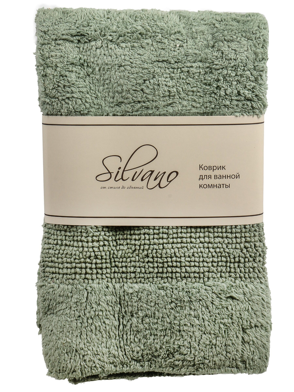 Коврик для ванной 0.5х0.8 м Silvano Лиона: стильный серо-зеленый акцент для уюта в ванной, 100% хлопок, комфорт для ног и быстрое впитывание влаги.