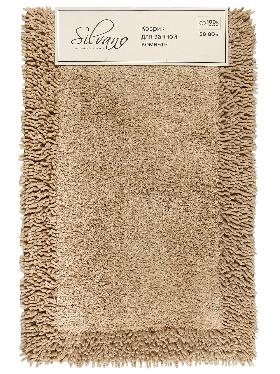 Коврик для ванной из хлопка 0.5х0.8 м Silvano Лиона: комфорт для ног, стильный светло-бежевый дизайн, натуральный материал — идеален для дома и дачи.