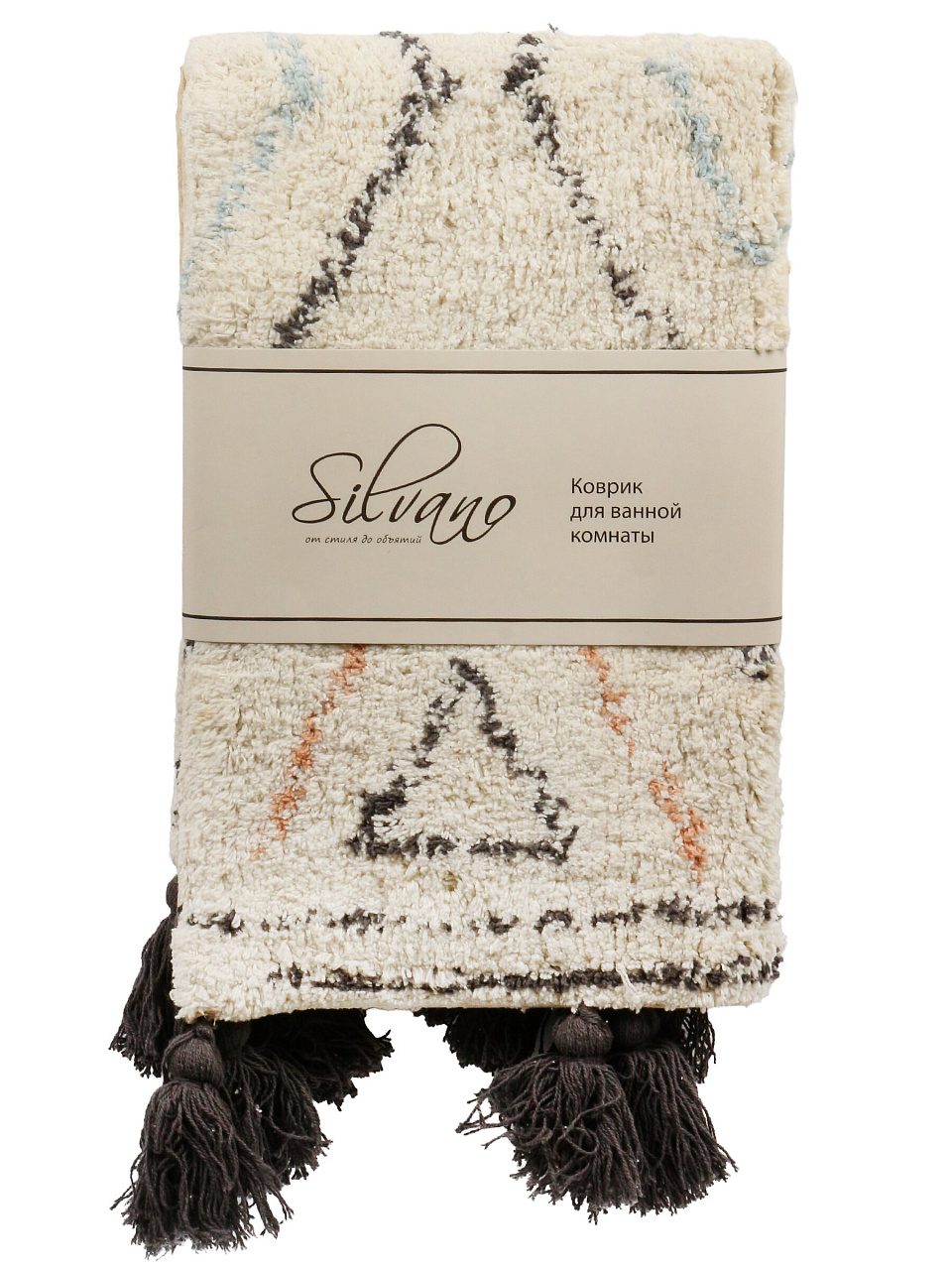 Коврик для ванной Silvano Лиона 0.5×0.8 м: хлопок, стильные серые ромбы, кисточки. Быстро сохнет, не скользит, уют и защита пола — выгодно для дома и дачи.