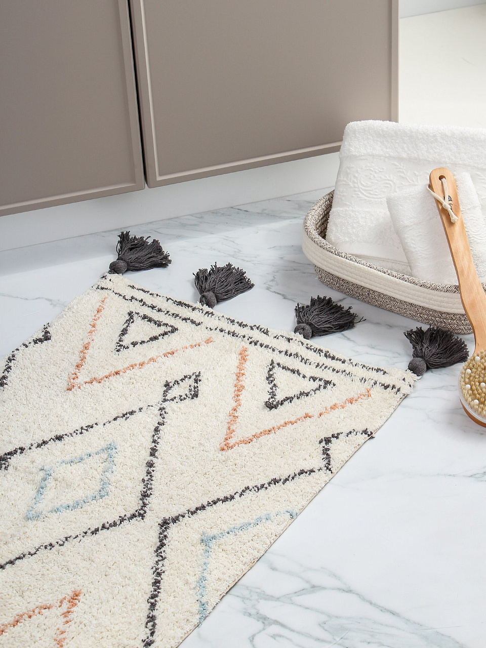 Коврик для ванной из хлопка с геометрическим узором «ромбы» — это удачный выбор для тех, кто ищет недорогой и долговечный текстиль для дома или дачи. Благодаря натуральному хлопку коврик быстро впитывает влагу и быстро сохнет, предотвращая появление плесени и неприятных запахов. Уникальная текстура и декоративные кисточки делают его не только практичным, но и стильным акцентом в интерьере.