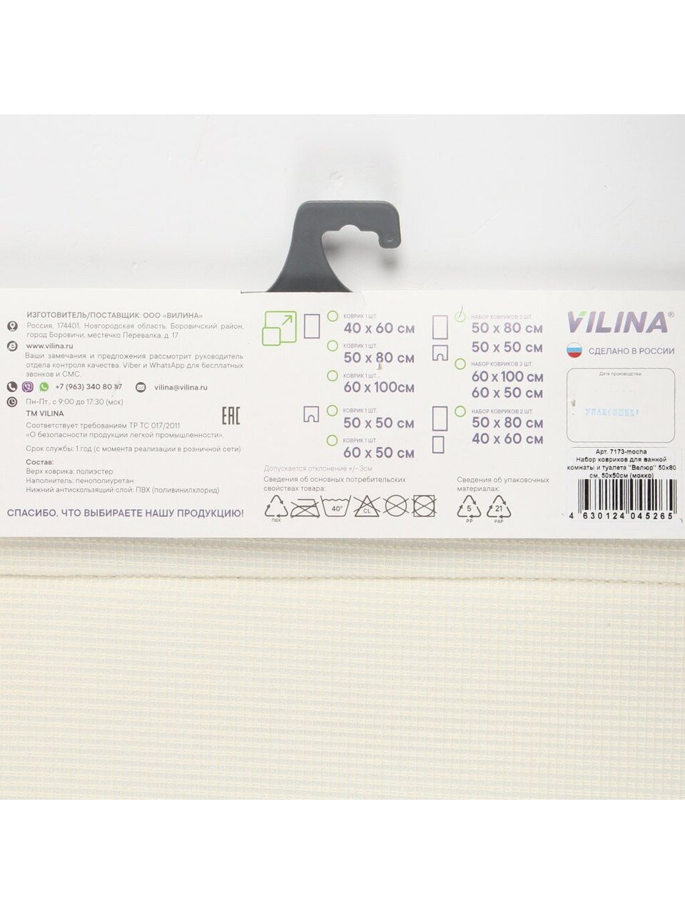 Покупка этого набора – выгодное вложение в комфорт и безопасность дома. Коврики обеспечивают приятные тактильные ощущения, защищают пол от влаги и загрязнений, а стильное исполнение добавляет интерьеру завершенности. Сделайте каждое посещение ванной и туалета более приятным и безопасным, выбрав комплект ковриков Вилина в трендовом цвете мокко.