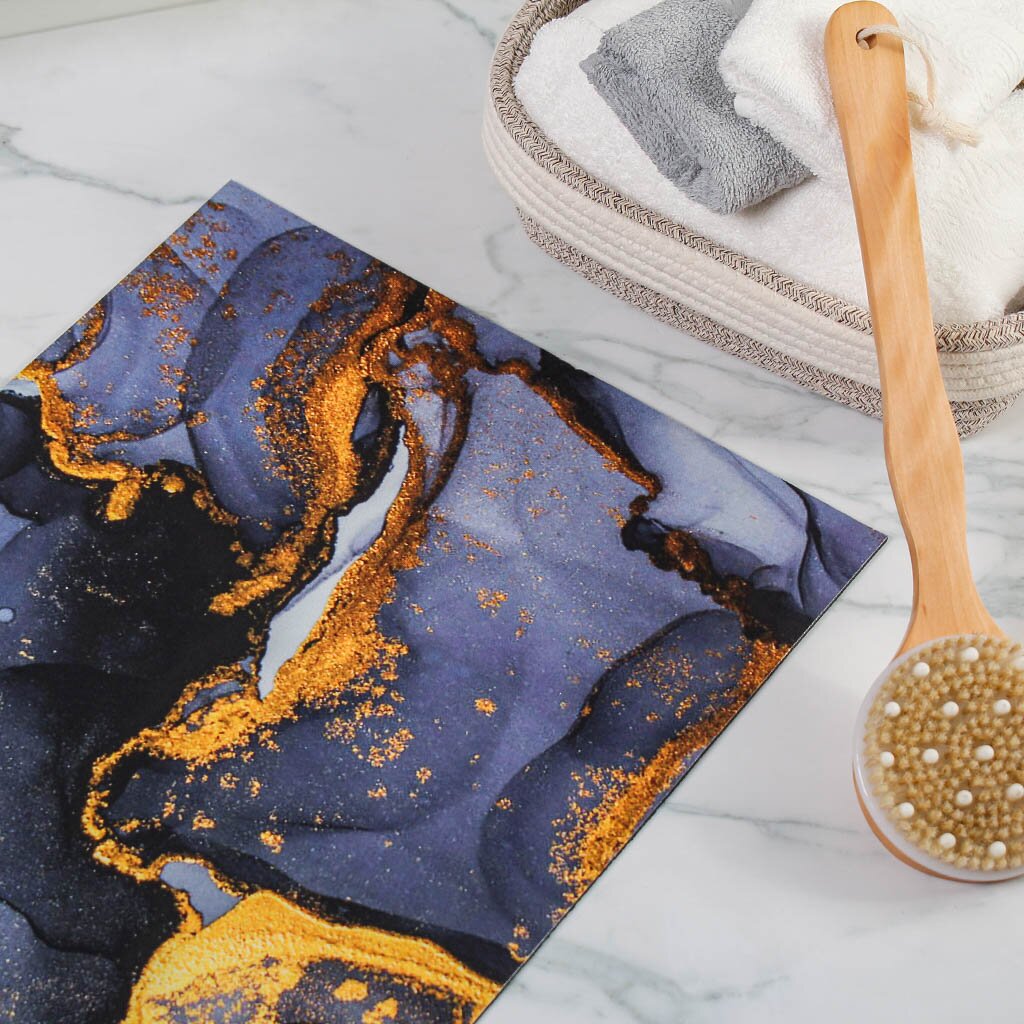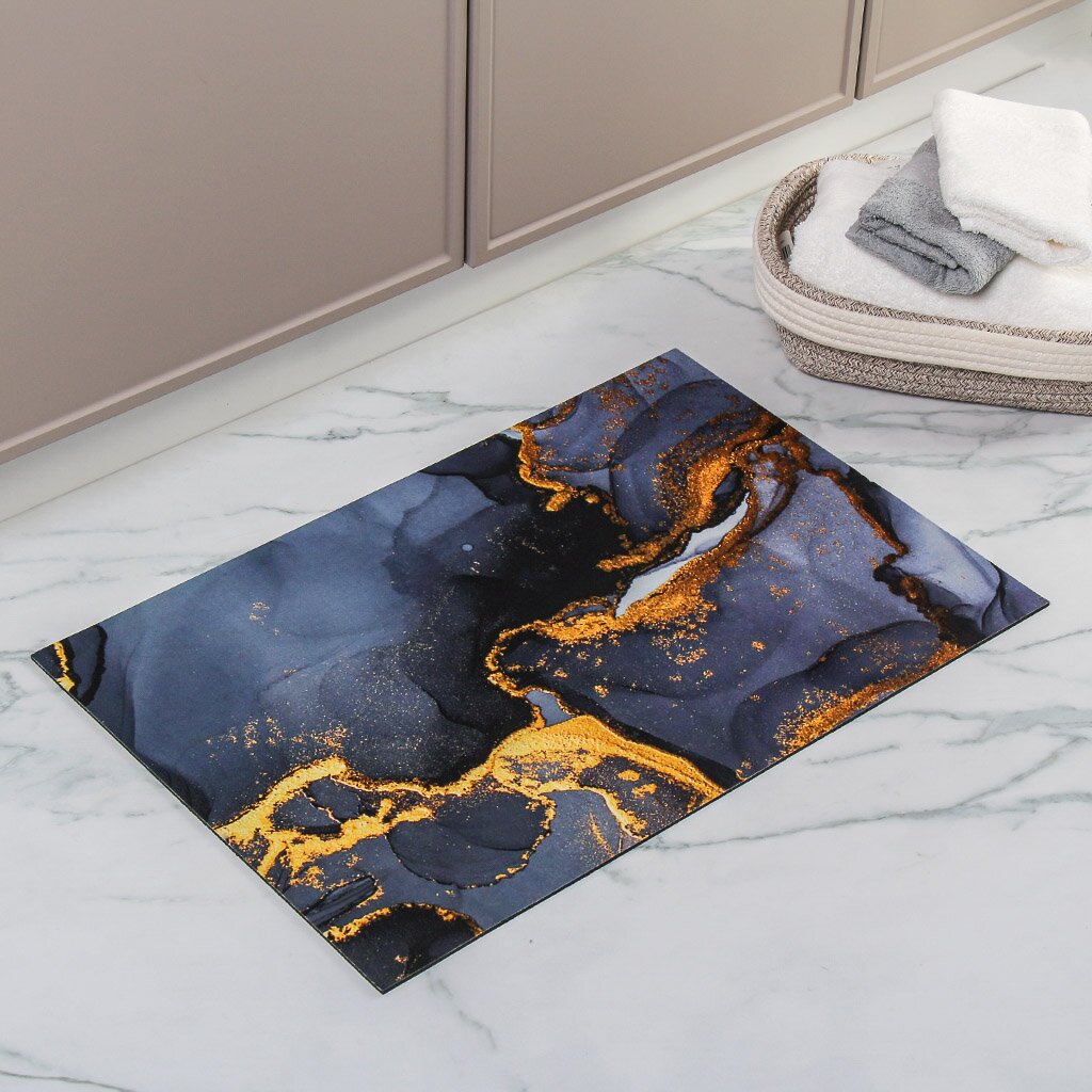 Коврик для ванной Dekotex Diatomite 40х60 см: впитывает влагу за секунды, защищает пол от луж, стильно дополняет интерьер золотым мрамором.