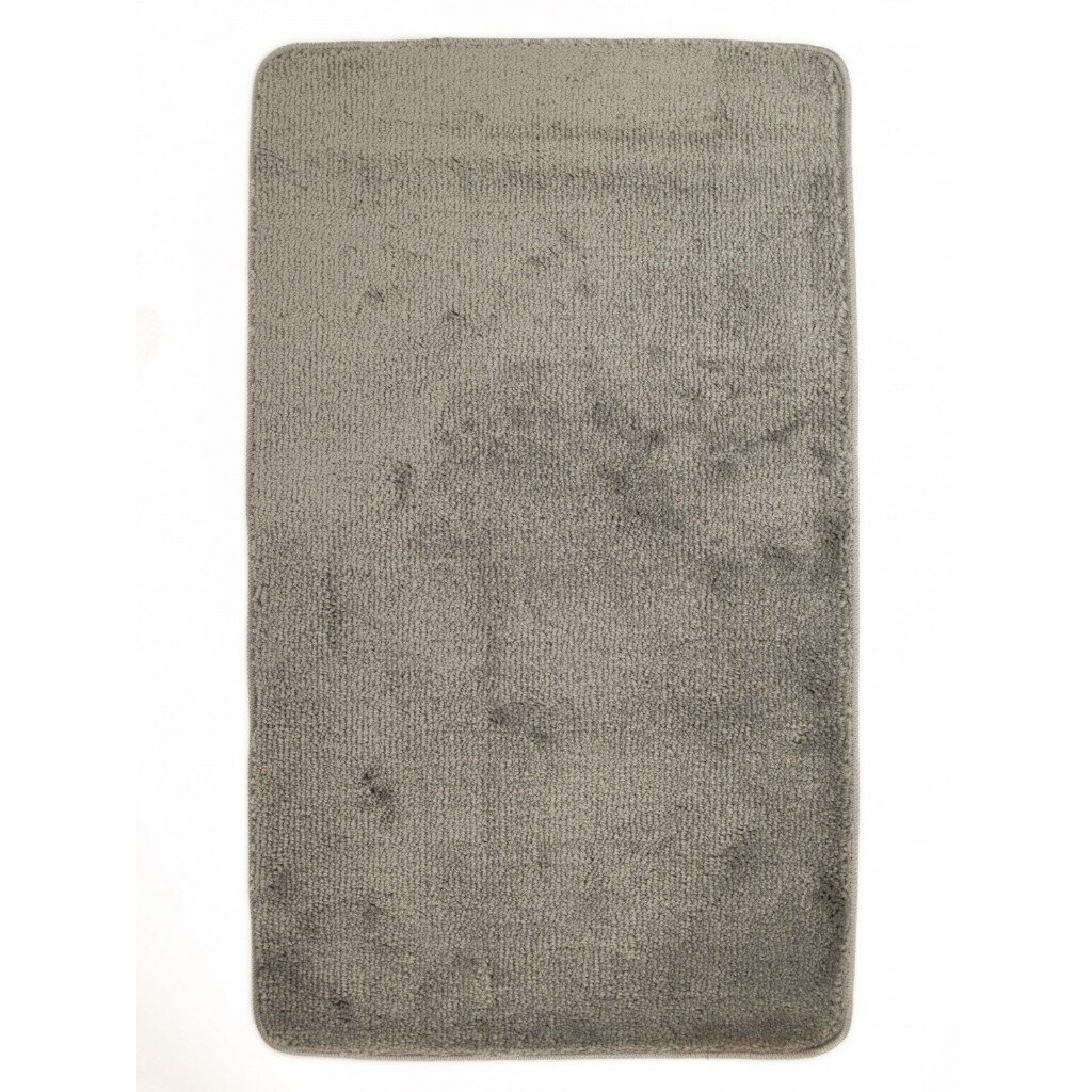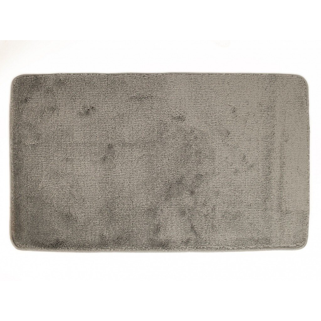 Прямоугольный коврик размером 60х100 см, без рисунка, в универсальном сером цвете — оптимален для стандартных и компактных ванных комнат.