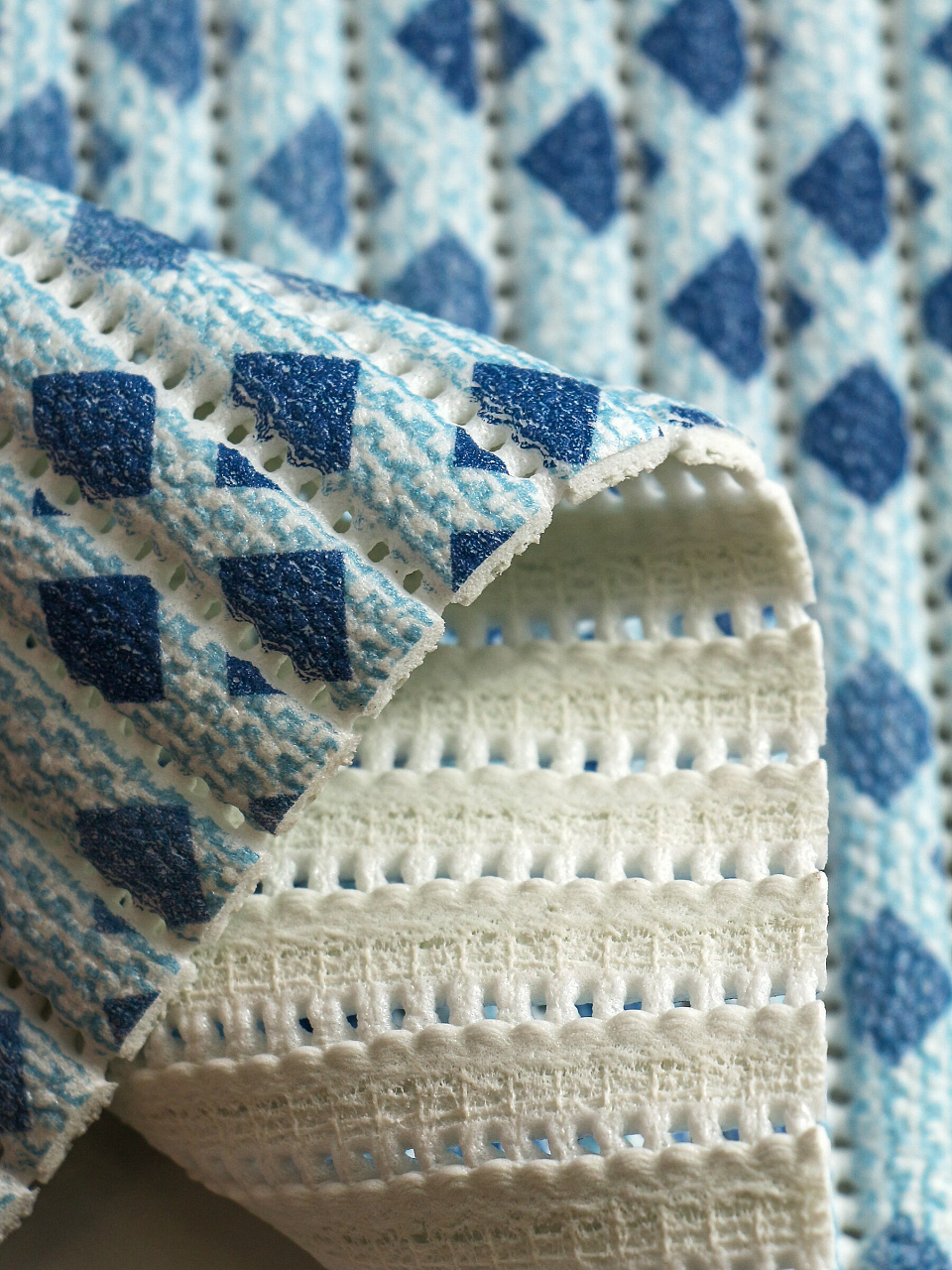 Коврик для ванной DEKOMARIN 258А — это влаговпитывающее покрытие с антискользящей сеткой, созданное для повышения безопасности и комфорта в вашей ванной комнате. Благодаря вспененному ПВХ, коврик устойчив к износу и не пропускает влагу, а сине-белая расцветка гармонично сочетается с любым интерьером. Если вы ищете, какой коврик выбрать для ванной, обратите внимание на длинный рулон 15 метров — его хватит на несколько зон или для больших помещений.