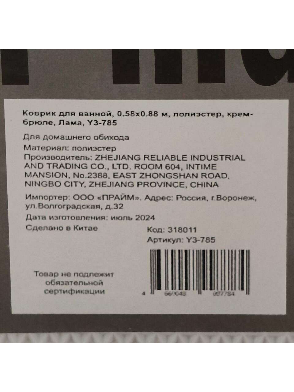 Вы можете приобрести «Коврик для ванной, 0.58х0.88 м, полиэстер, крем-брюле, Лама, Y3-785» и другие товары в нашем интернет-магазине в Твери по низким ценам и с бесплатным самовывозом.