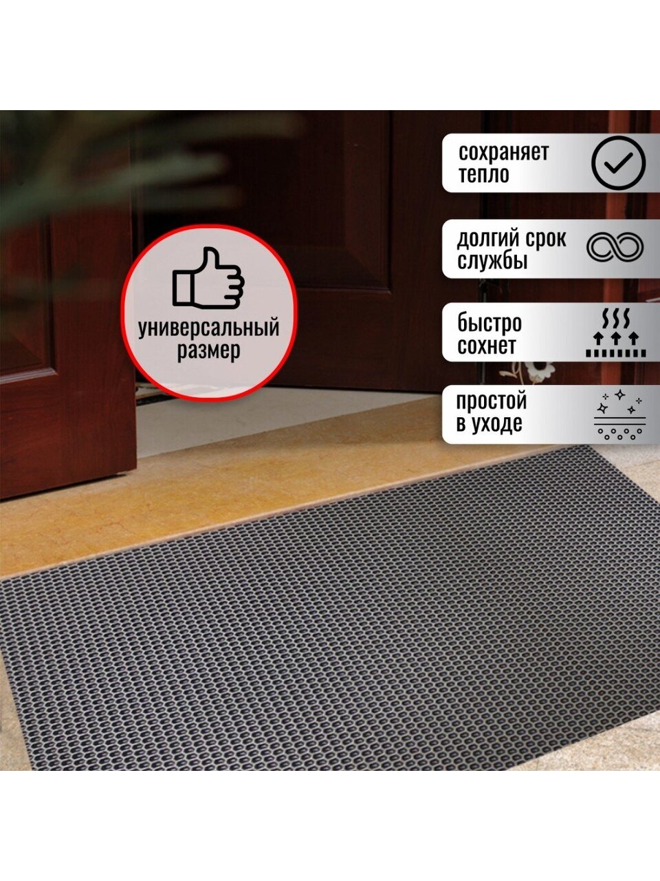 Универсальный коврик из материала EVA станет отличным помощником в поддержании чистоты в доме и стильным дополнением к интерьеру. Если разместить его у входа, то вся грязь, пыль и влага с обуви останутся внутри ячеек коврика и не попадут в дом. Такой коврик также пригодится для колясок и велосипедов: вся грязь с колёс останется на нём. Ещё одно применение EVA-коврика — в ванной комнате: специальные ячейки задержат пролитую жидкость.