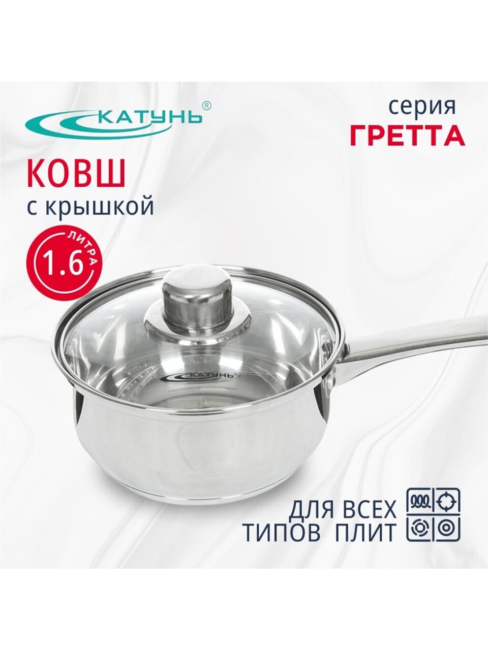 Вы можете приобрести «Ковш нержавеющая сталь, 1.6 л, крышка стекло, ручка нержавеющая сталь, индукция, Катунь, Гретта, КТ04-К» и другие товары в нашем интернет-магазине в Обнинске по низким ценам и с бесплатным самовывозом.