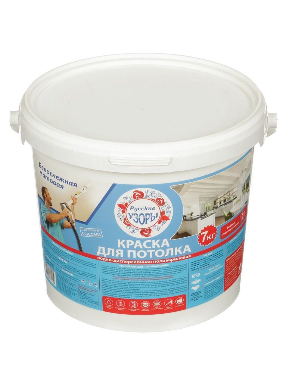Вы можете приобрести «Краска водно-дисперсионная, Русские узоры, акриловая, для потолков, матовая, белоснежная, 7 кг» и другие товары в нашем интернет-магазине в Ельце по низким ценам и с бесплатным самовывозом.