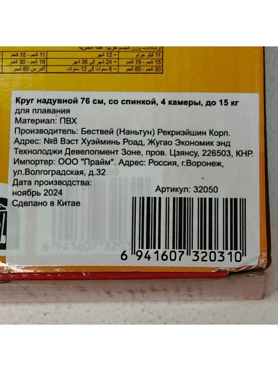 Вы можете приобрести «Круг надувной 76 см, Bestway, со спинкой, 4 камеры, до 15 кг, 32050» и другие товары в нашем интернет-магазине в Ельце по низким ценам и с бесплатным самовывозом.