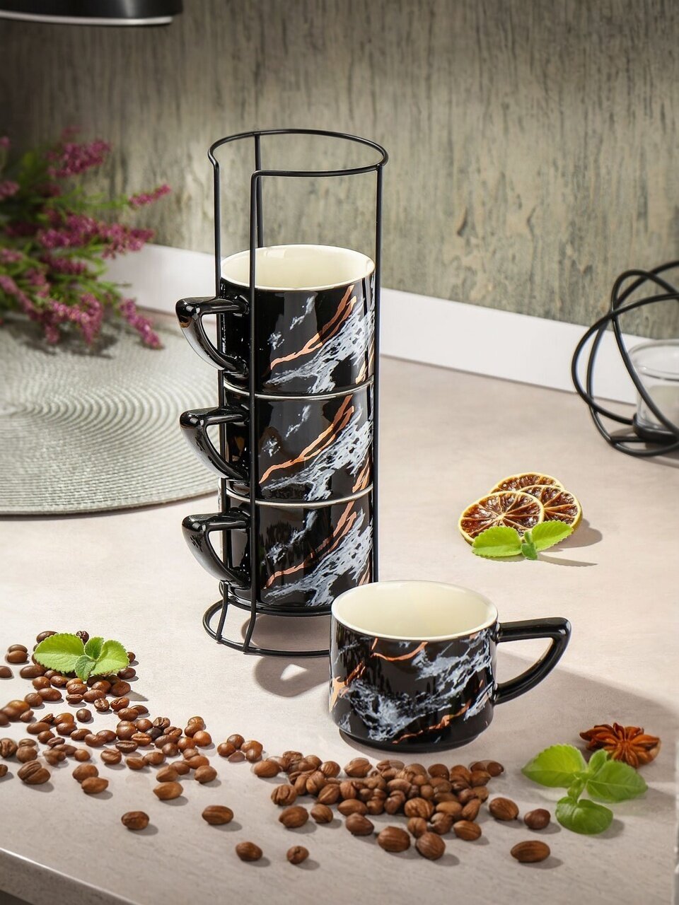 Вы можете приобрести «Кружка керамика, 4 шт, 200 мл, Черный мотив, Y4-7273, металлическая подставка» и другие товары в нашем интернет-магазине в Иваново по низким ценам и с бесплатным самовывозом.