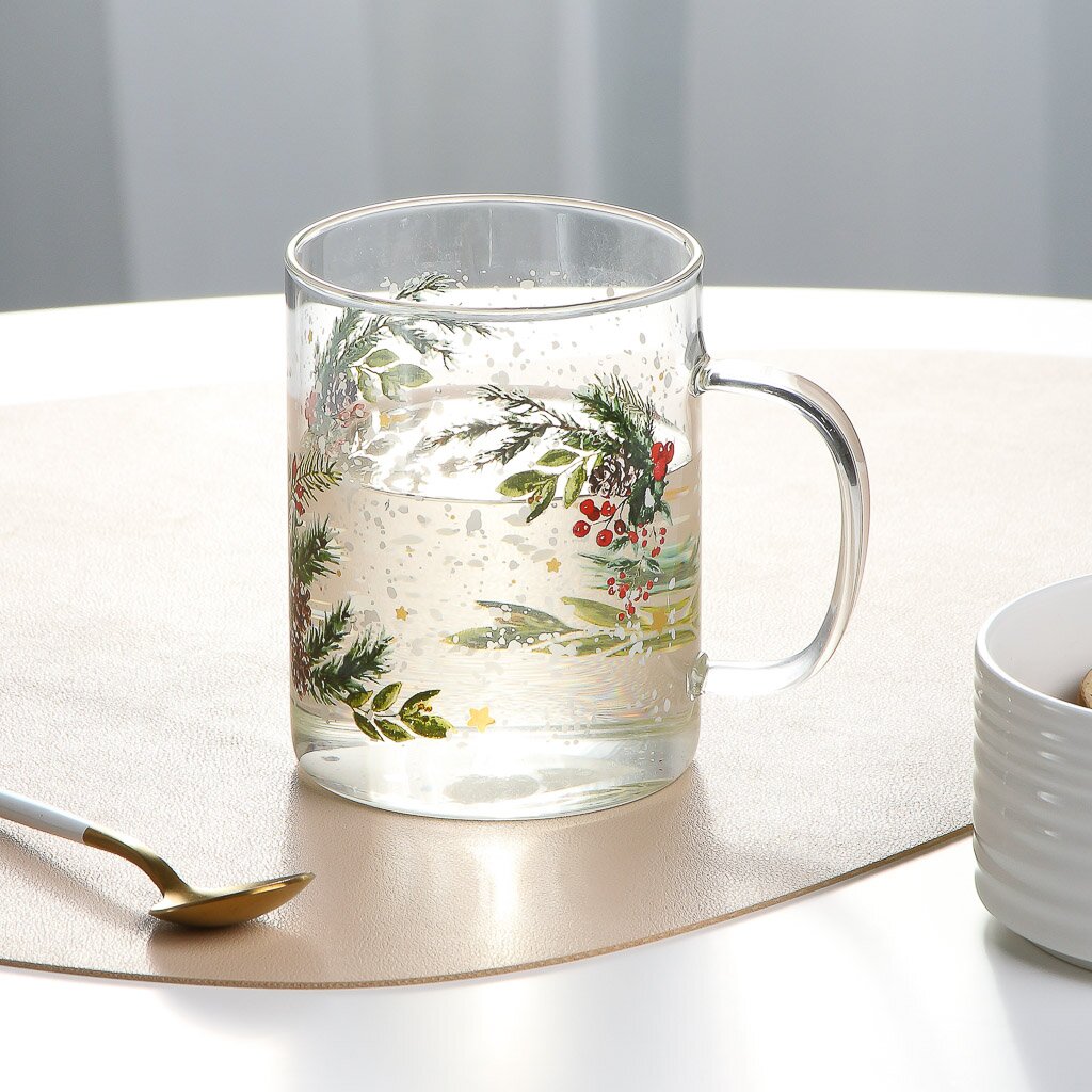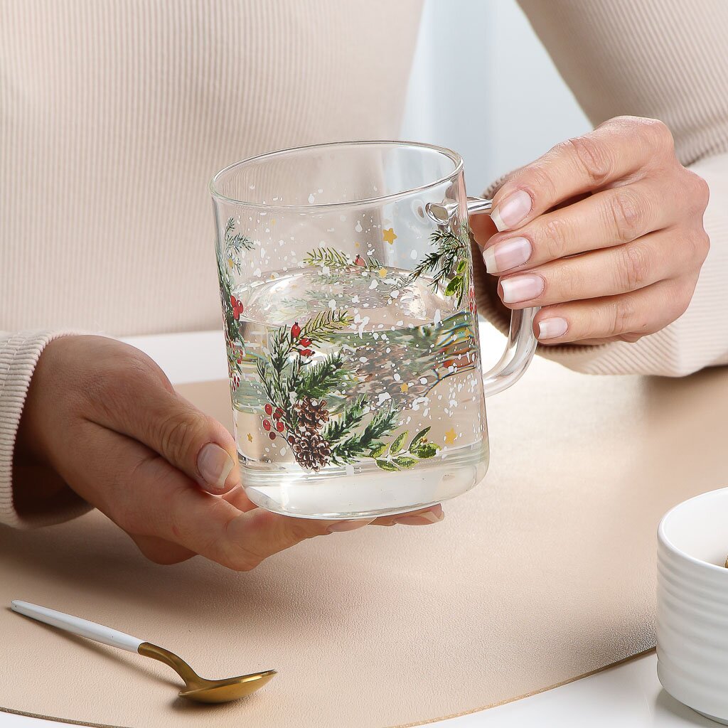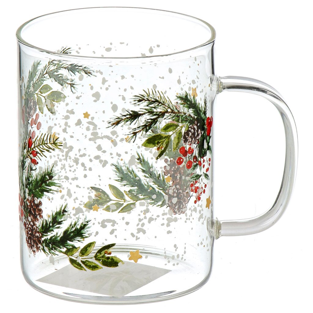 Кружка стекло, 400 мл, 8х10 см, Еловая ветвь, Daniks