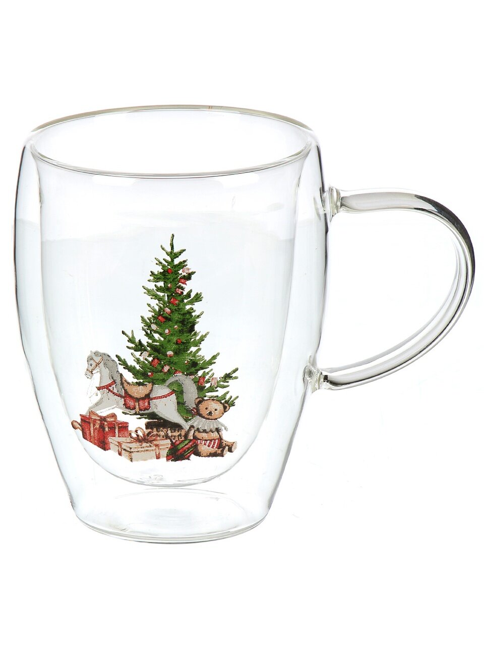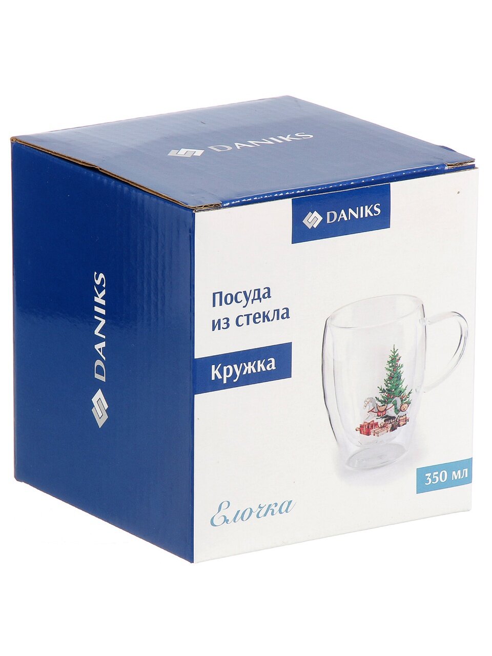 Кружка стекло 350 мл с двойными стенками «Елочка» Daniks — стильный подарок и уют для зимних вечеров. Сохраняет тепло, не обжигает руки, подходит для дома и офиса.
