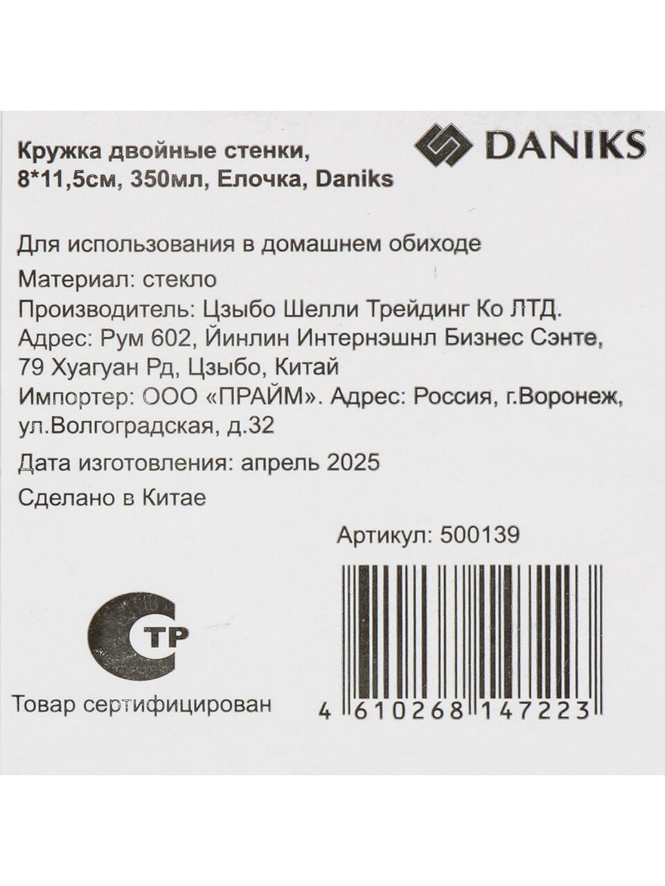 Вы можете приобрести «Кружка стекло, 350 мл, Елочка, двойные стенки, 8х11.5 см, Daniks» и другие товары в нашем интернет-магазине в Санкт-Петербургe по низким ценам и с бесплатным самовывозом.