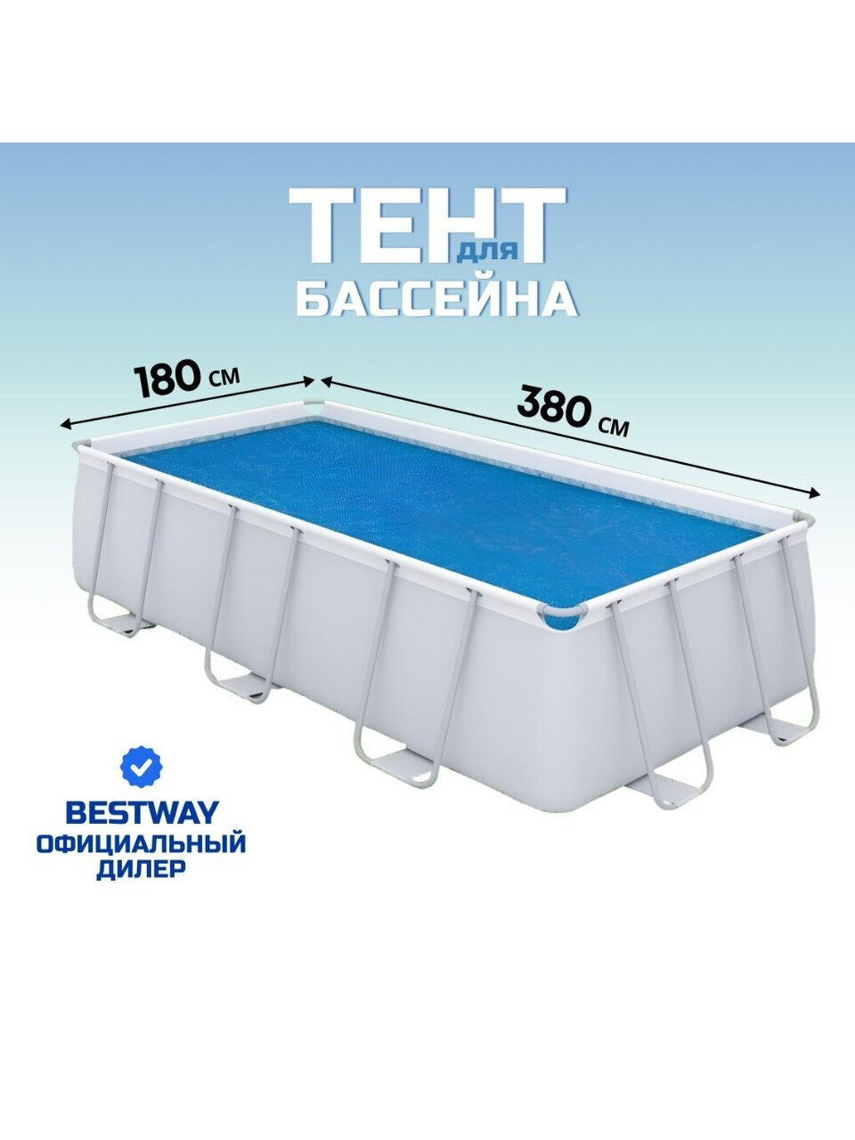 Тент размером 180х380 см идеально подходит для каркасных бассейнов размером 404х201х100 см и 412х201х122 см. Изготовленный из прочного полиэтилена плотностью 150 г/м2, он обеспечивает надежную защиту и долговечность. Уникальная конструкция с воздушно-пузырчатой пленкой позволяет солнечному покрывалу размещаться пузырьками вниз, непосредственно на поверхности воды, что способствует эффективному нагреву.