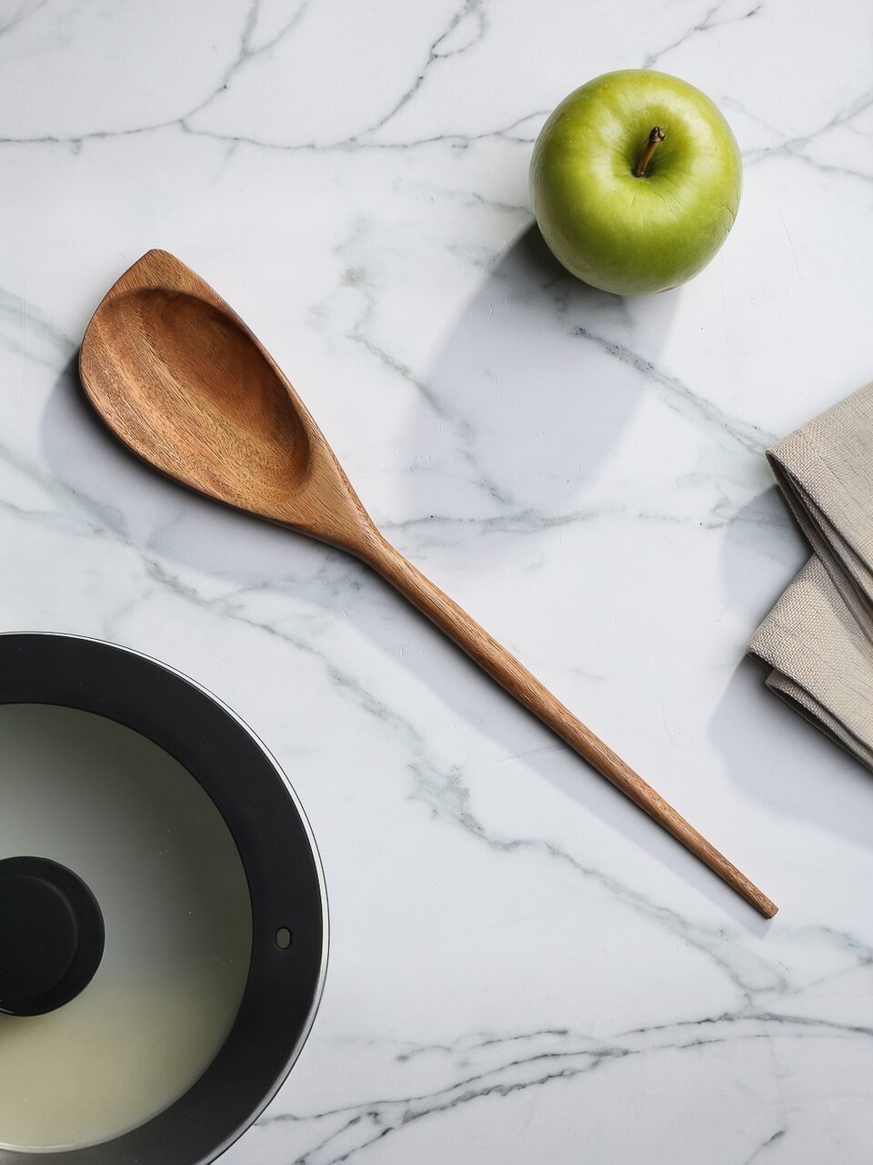 - Экологичный выбор — ложка из массива акации не впитывает запахи, подходит для любых блюд.