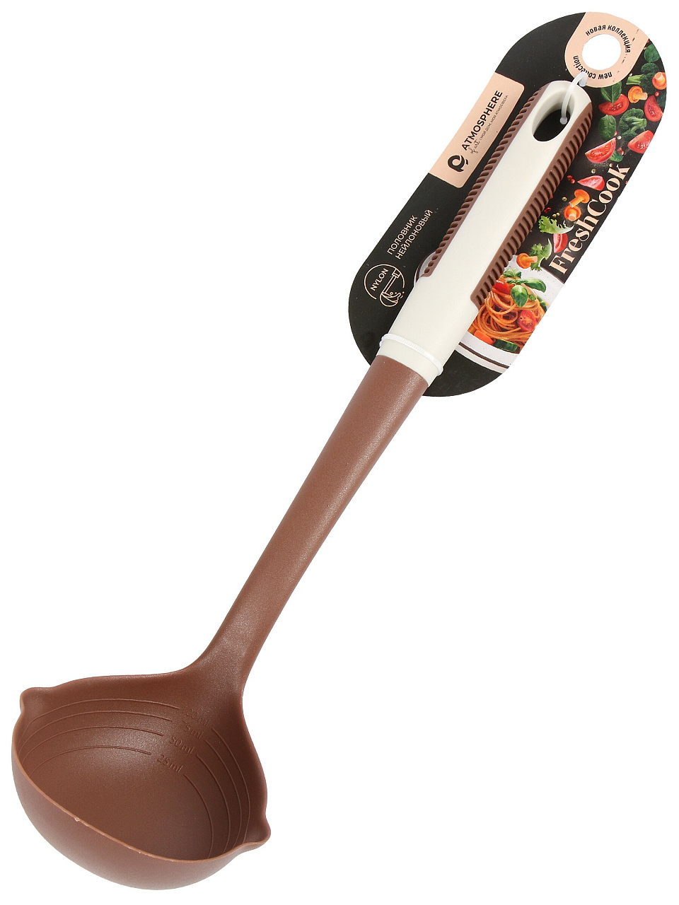 Половник нейлоновый Atmosphere FreshCook 34.5 см — универсальное решение для антипригарных кастрюль и компотов: долговечность, комфорт, стиль.