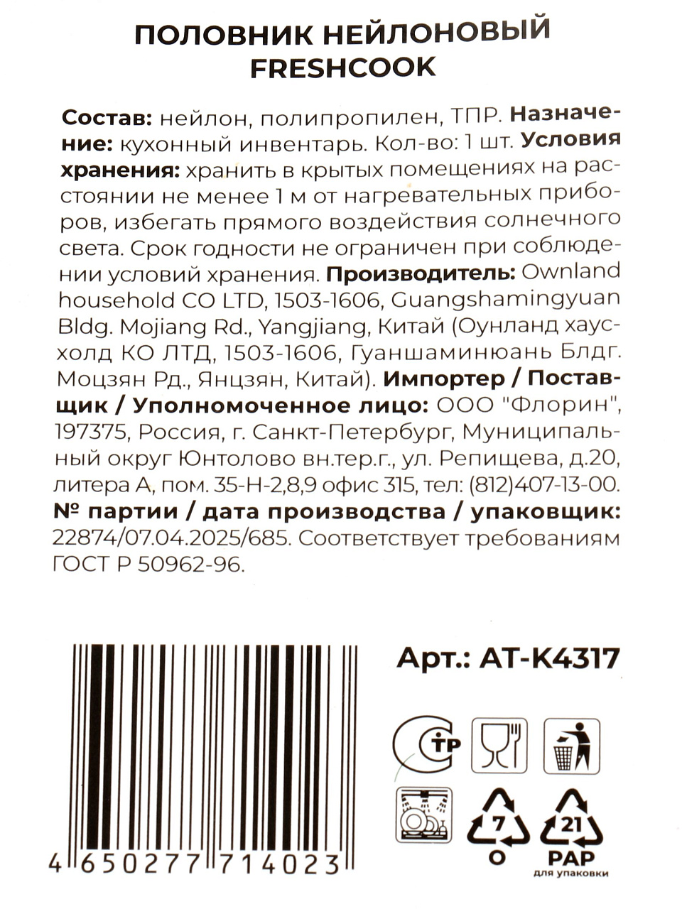 Можно ли мыть нейлоновый половник Atmosphere FreshCook в посудомоечной машине?