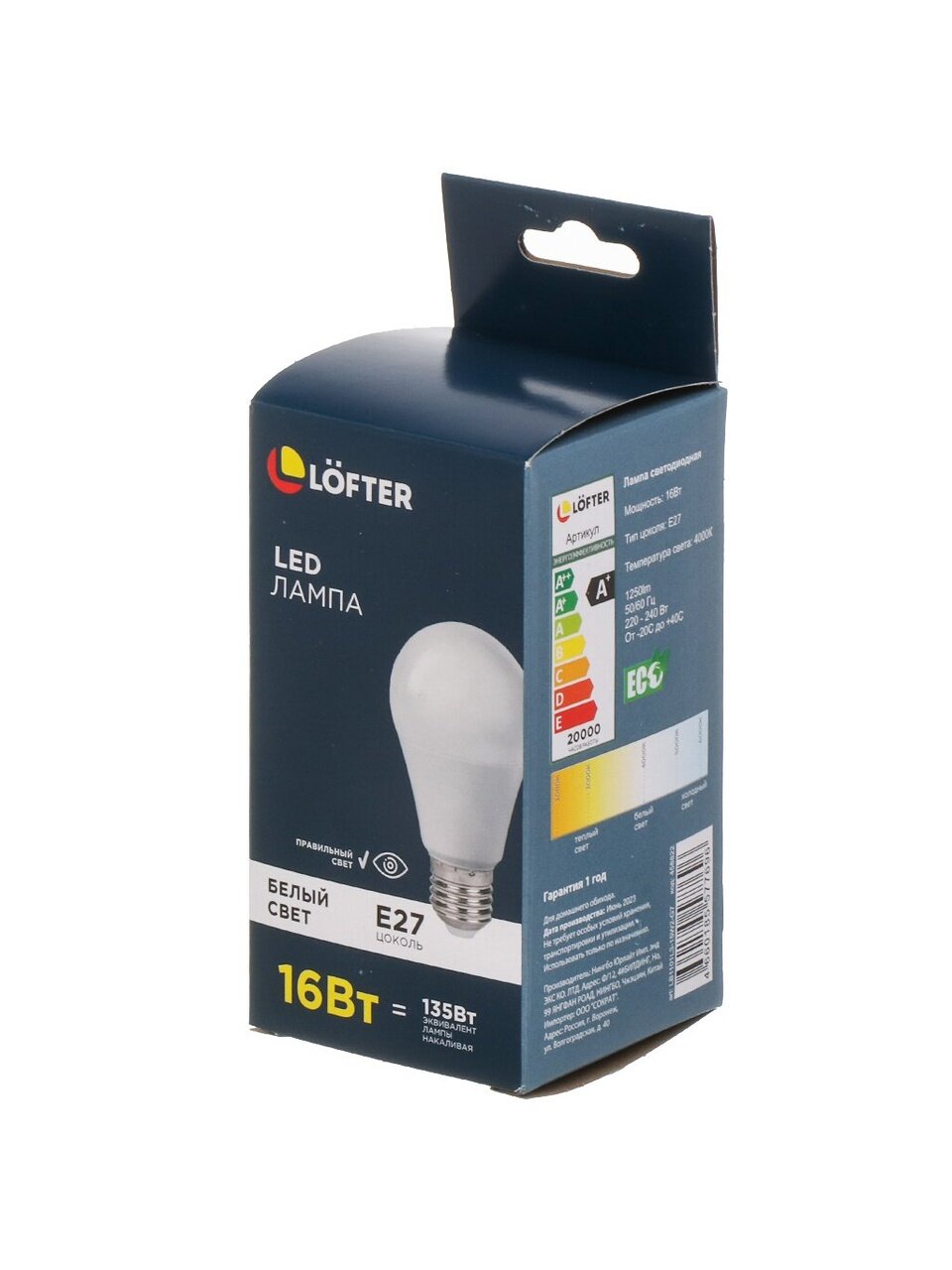 Вы можете приобрести «Лампа светодиодная E27, 16 Вт, 135 Вт, 220 В, груша, 4000 К, нейтральный белый свет, Lofter» и другие товары в нашем интернет-магазине в Таганроге по низким ценам и с бесплатным самовывозом.