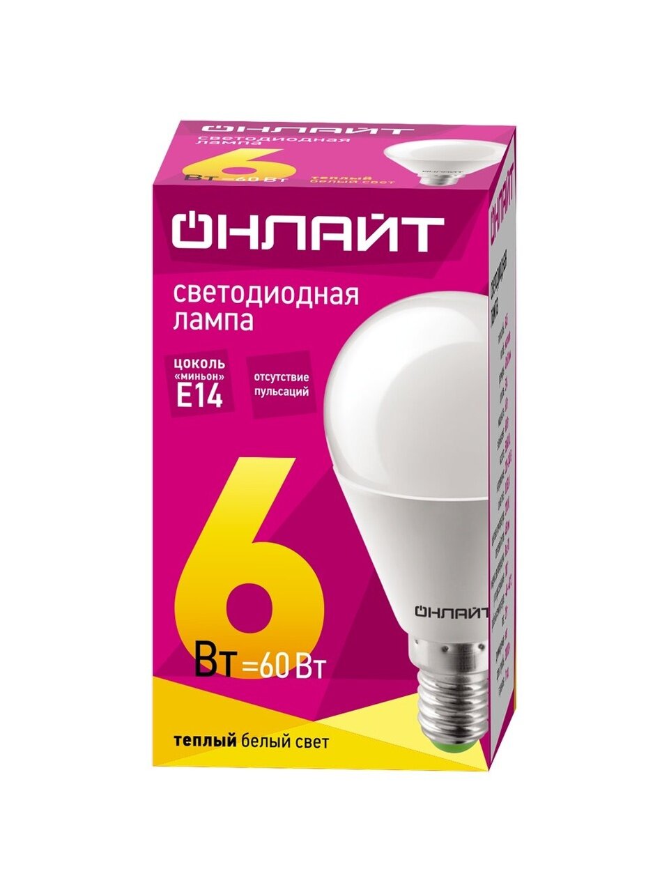 Вы можете приобрести «Лампа светодиодная E14, 6 Вт, 60 Вт, шар, 2700 К, теплый белый свет, Онлайт, 71643» и другие товары в нашем интернет-магазине в Твери по низким ценам и с бесплатным самовывозом.