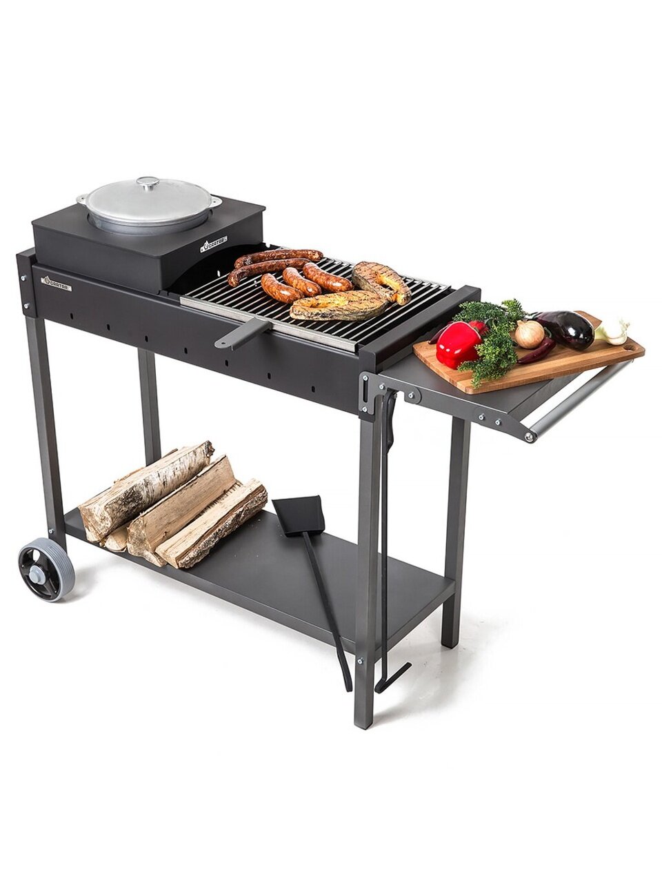 Мангал 1360х850 Gratar МАН 302 — разборный гриль с большими складными полками и колесами, для дачи и пикника. Легко перевозить, удобно готовить на большую компанию.