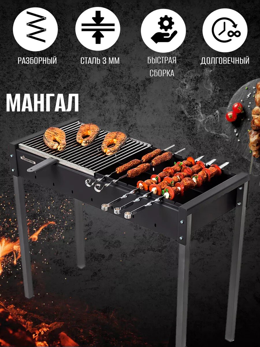 - Надёжный гриль-мангал из толстой стали.