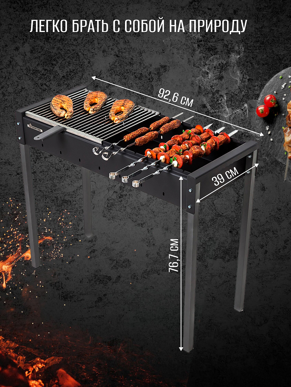 Вы можете приобрести «Мангал 926х390х767 мм, 3 мм, разборный, гриль, Gratar, МАН 301» и другие товары в нашем интернет-магазине в Ельце по низким ценам и с бесплатным самовывозом.