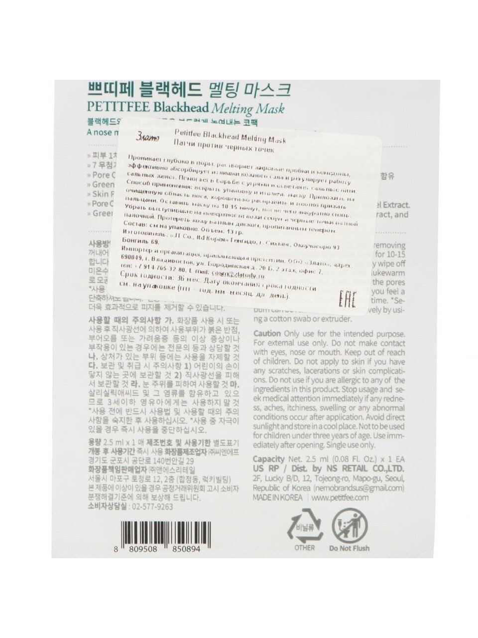 - Инновационная тающая формула — эффективное удаление чёрных точек без агрессивного воздействия;