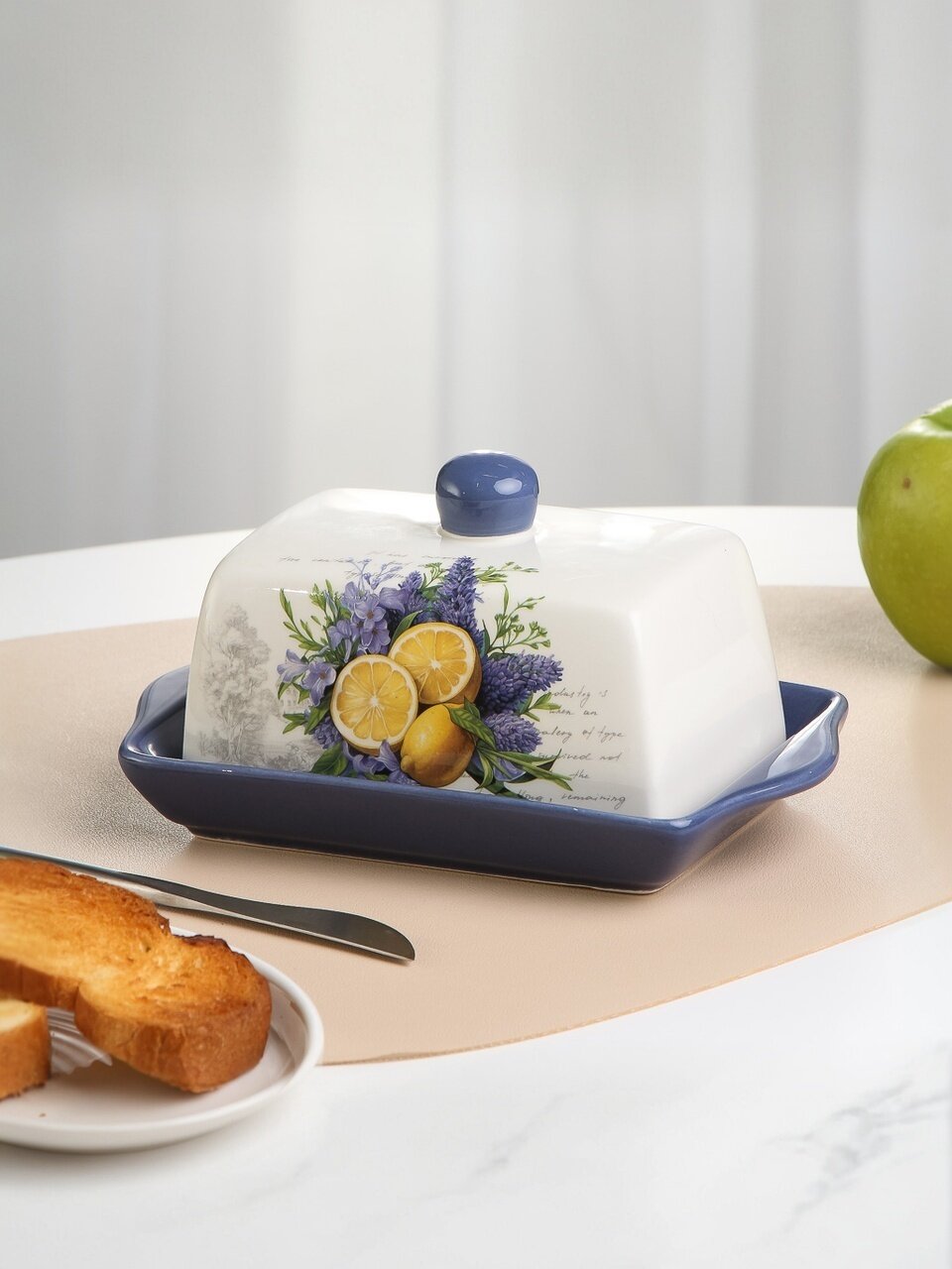 Если вы ищете, какую масленку купить для подарка или для сервировки на кухне, обратите внимание на коллекцию Daniks «Лаванда» — она сочетает практичность, долговечность и стильный дизайн. Масленка легко впишется в любой интерьер, а синий цвет придаёт акцент вашему столу.