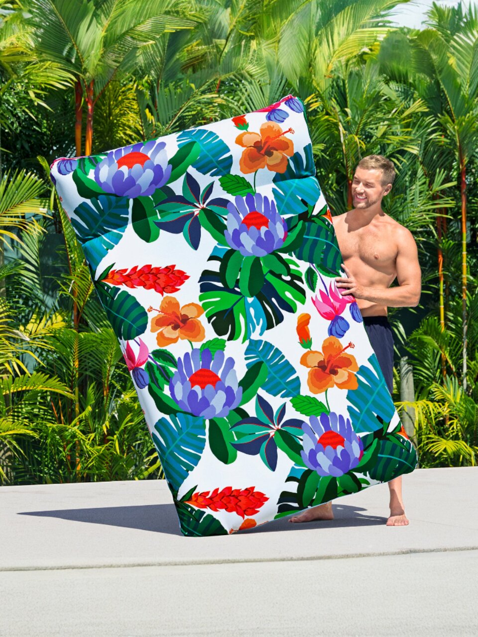 В отличие от стандартных надувных матрасов, Blissful Drifter XL выделяется прочной тканевой поверхностью и простотой ухода — чехол легко снимается и моется. Часто спрашивают, подходит ли этот матрас для ежедневного использования на солнце — благодаря защите UPF 50 он не теряет цвет и форму даже при активной эксплуатации. Не знаете, как использовать матрас без насоса? Просто надуйте любым стандартным насосом, насос не входит в комплект.