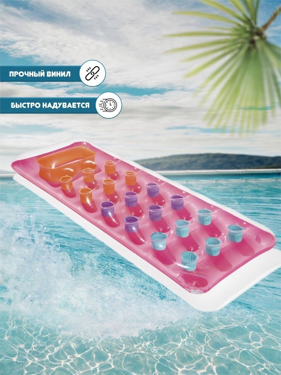 BestWay 43040 представляет собой надувной матрас которой станет незаменимой вещью если вы любите проводить отдых на море или просто нежиться в бассейне. Удовольствие которые получает человек неспешно качаясь на надувном матрасе по волнам можно сравнить только с поеданием холодного мороженного жарким летом. Продуманная эргономика этого матраса позволит вам спокойно перемещаться на воде даже в достаточно неспокойную погоду без опасения соскользнуть вниз. С транспортировкой этого матраса у вас проблем тоже не возникнет потому что в свернутом виде он совсем небольшой.