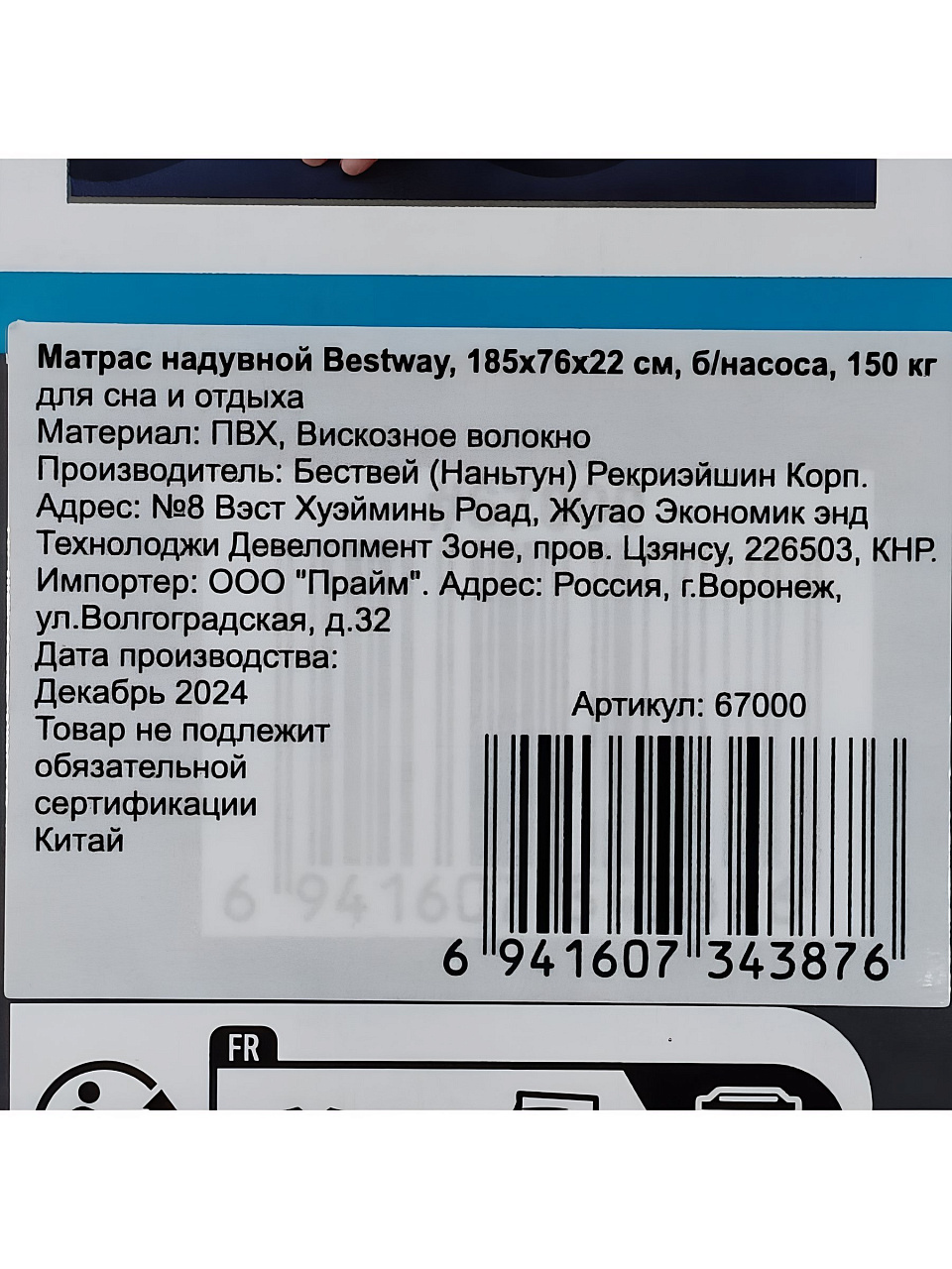 Вы можете приобрести «Матрас надувной Bestway, 185х76х22 см, 67000/010163BW, без насоса, флокированный, ортопедический, 150 кг» и другие товары в нашем интернет-магазине в Ставрополе по низким ценам и с бесплатным самовывозом.