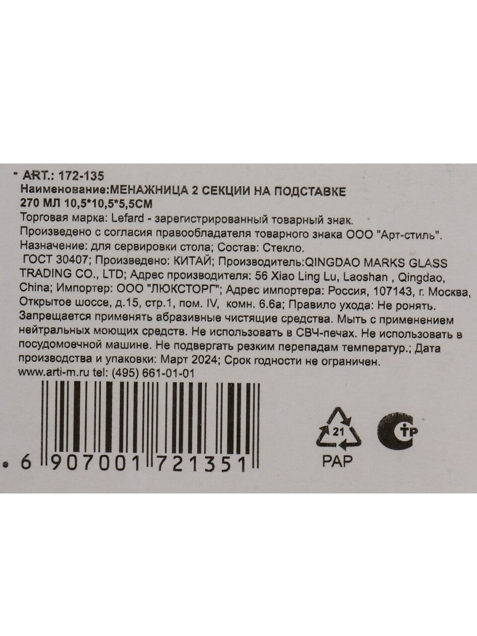 Вы можете приобрести «Менажница стекло, 10.5х5.5 см, 2 секции, на подставке, Lefard, 172-135» и другие товары в нашем интернет-магазине в Липецке по низким ценам и с бесплатным самовывозом.