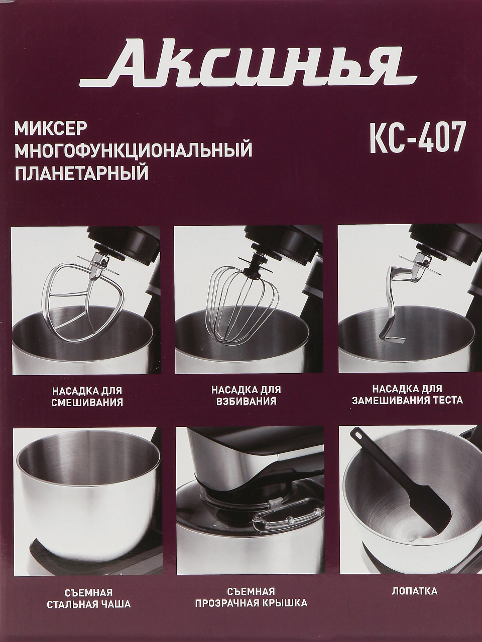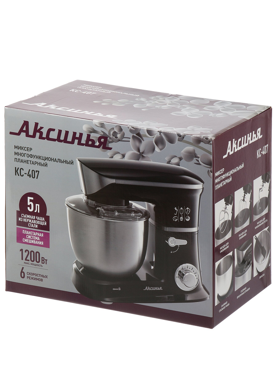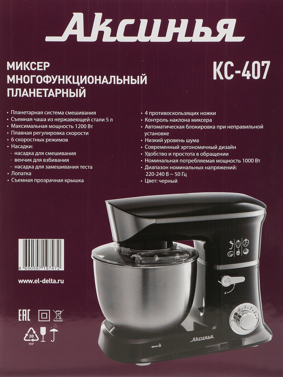 Миксер планетарный Аксинья, КС-407, 5 л, 1200 Вт, 6 скоростей, черный