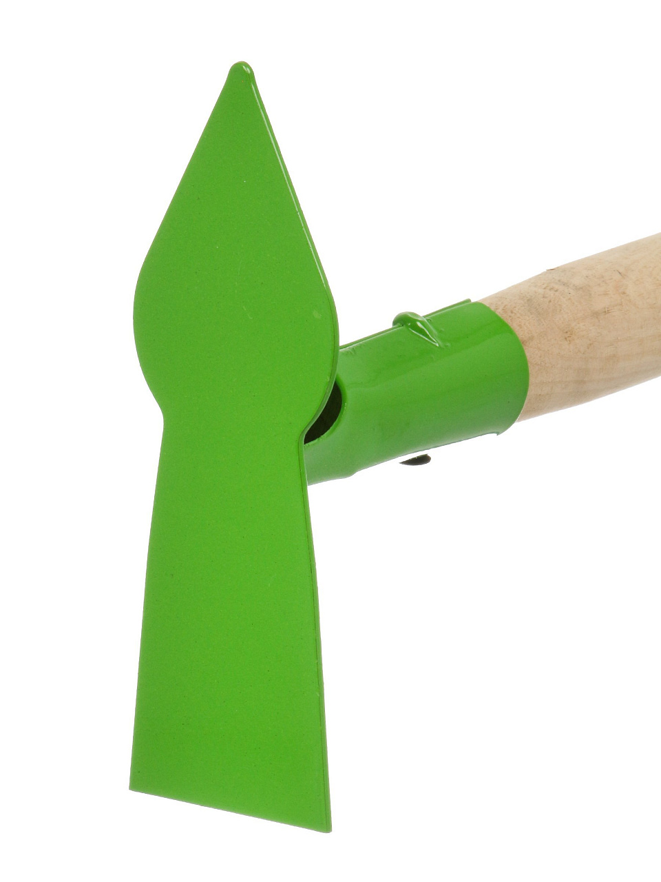 Рабочая часть полностью выполнена из металла, что обеспечивает высокую прочность и устойчивость к коррозии. Черенок короткий, удобно держать одной рукой.